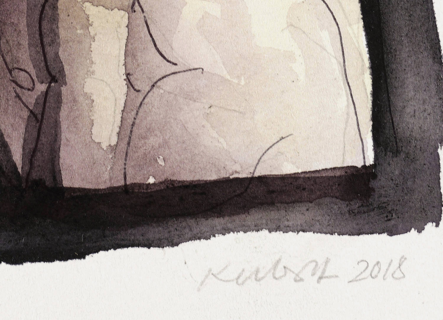 2018. Aquarell, auf weißem Karton. – Originale Künstlergrafik, von Rolf Kuhrt. – Unikat. – 13,5 x 16,0 cm (Darstellung), 21,5 x 16 cm (Blatt).