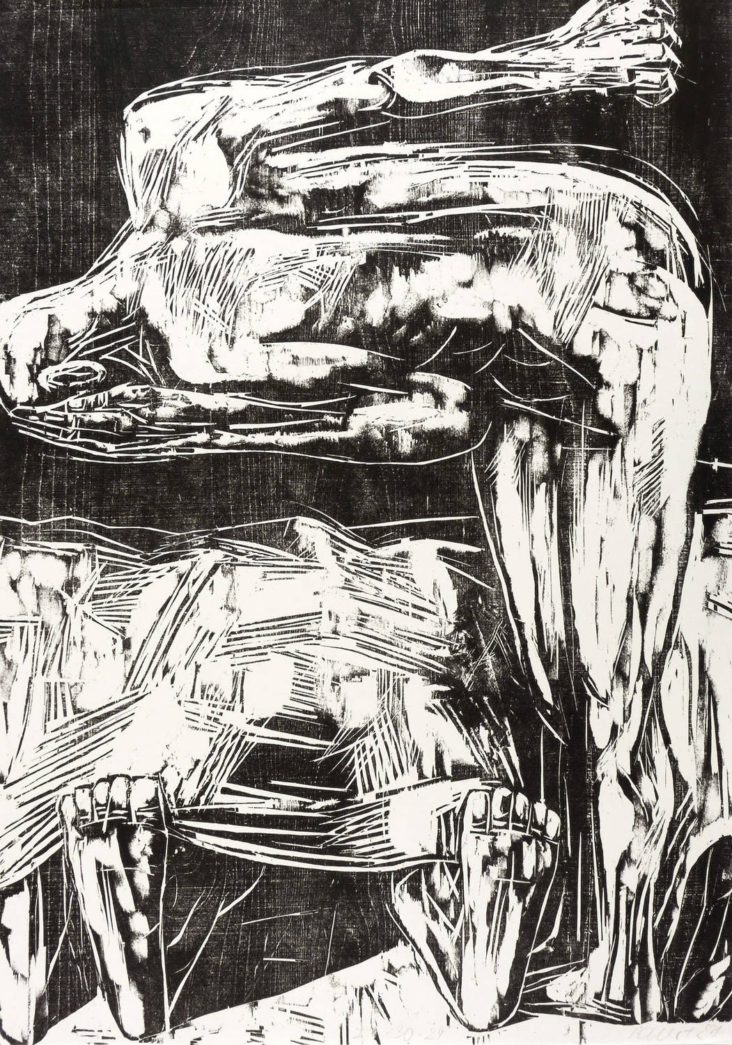 1981. Holzschnitt, in Schwarz, auf weichem hellem Velin. – Originale Künstlergrafik, von Rolf Kuhrt. – Auflage Exemplar Nr. 24/30. – 48,0 x 33,8 cm (Darstellung / Blatt).