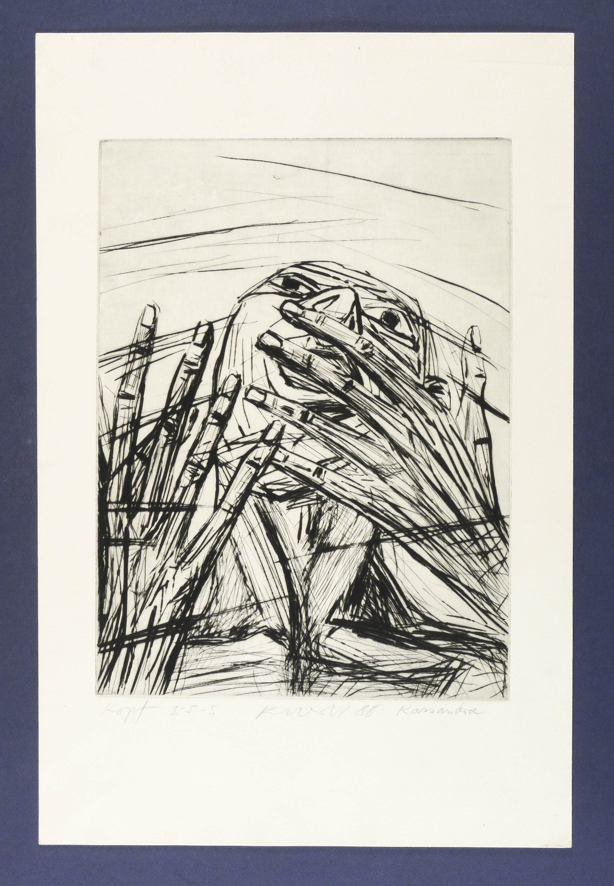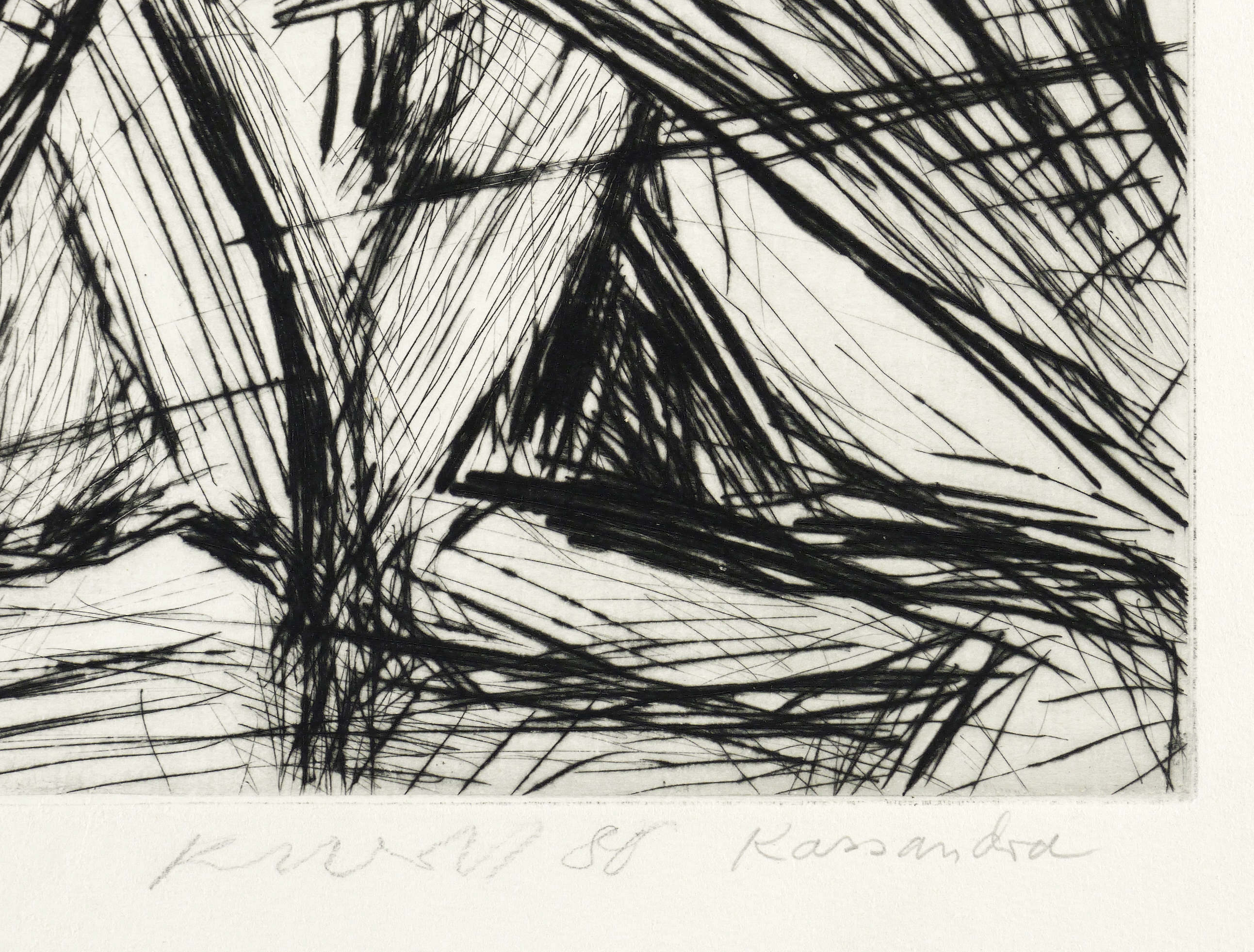 1988. Radierung / Kaltnadel, in Schwarz, mit leichtem plattenton, auf Hahnemühle-Bütten. – Von Rolf Kuhrt. – Auflage Exemplar Nr. 5/5. – 39,5 x 29,5 cm (Darstellung / Platte), 57,5 x 38 cm (Blatt).