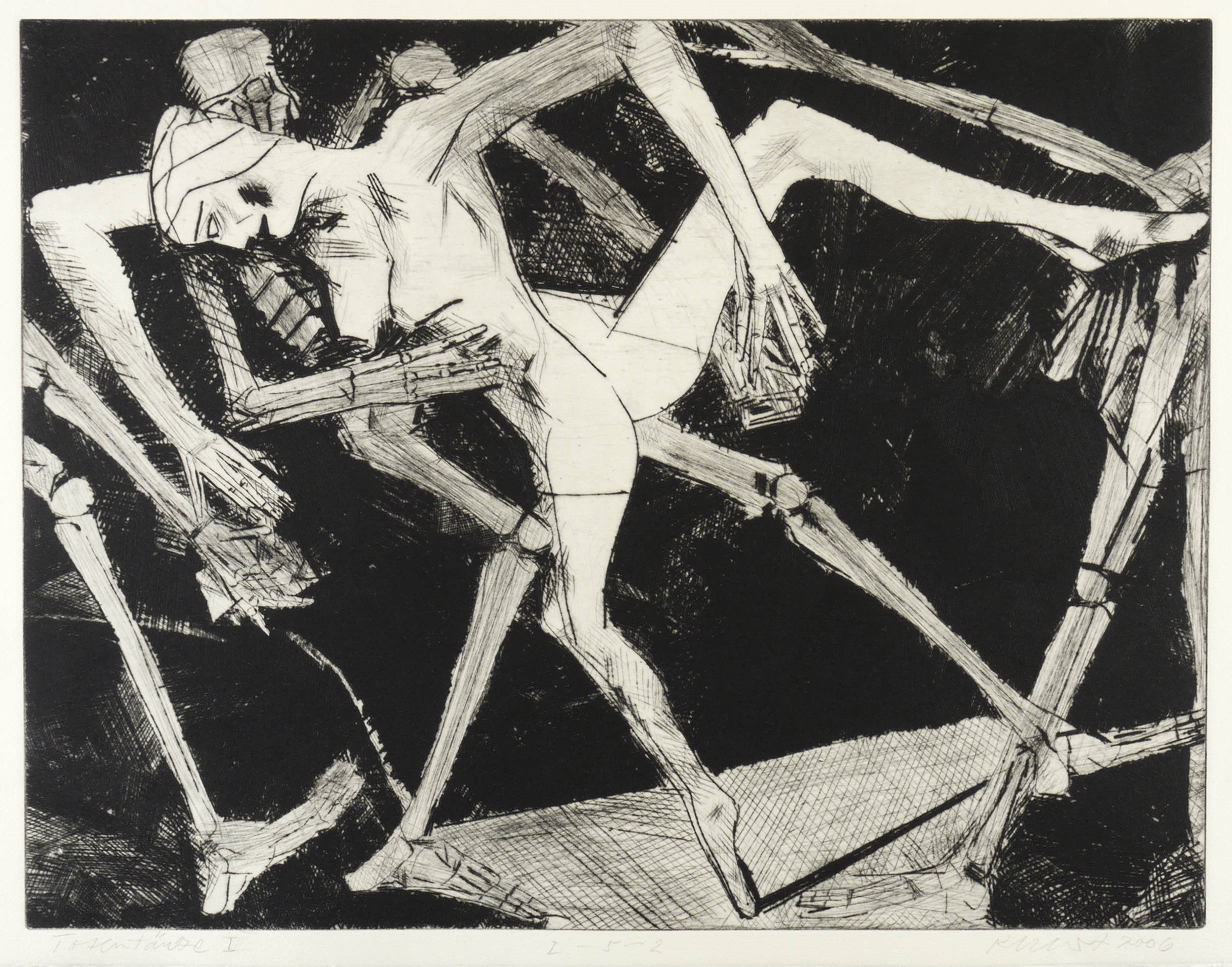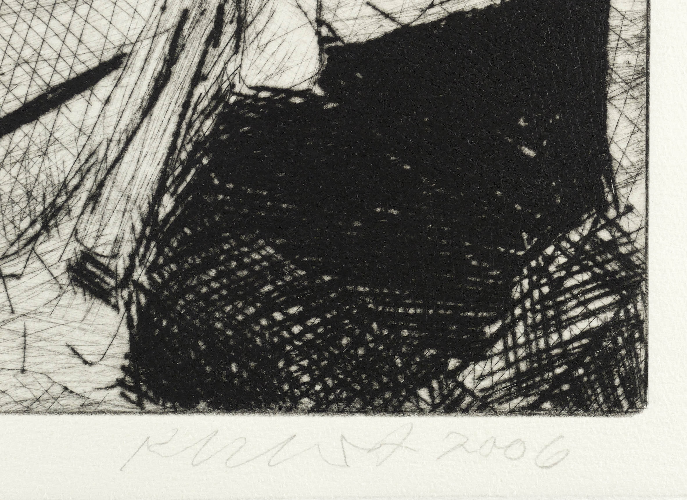 2006. Radierung / Kaltnadel, in Schwarz, auf schwerem hellchamois Hahnemühle-Bütten. – Originale Künstlergrafik, von Rolf Kuhrt. – Auflage Exemplar Nr. 2/5. – 49,5 x 64,5 cm (Darstellung / Platte), 54 x 75 cm (Blatt).