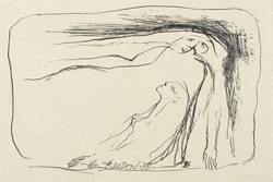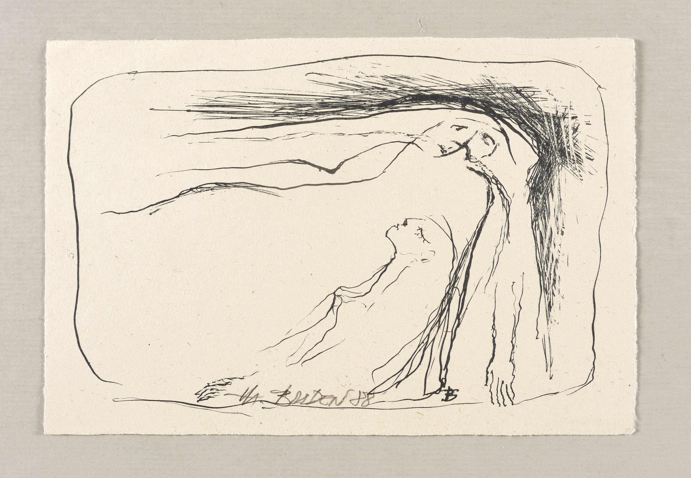 1988. Lithografie / Kreidelithografie, partiell geschabt, in Schwarz, auf hellchamois Bütten. – Originale Künstlergrafik, von Theo Balden. – 11,8 x 18,1 cm (Darstellung / Druckbild), 14 x 20 cm (Blatt).