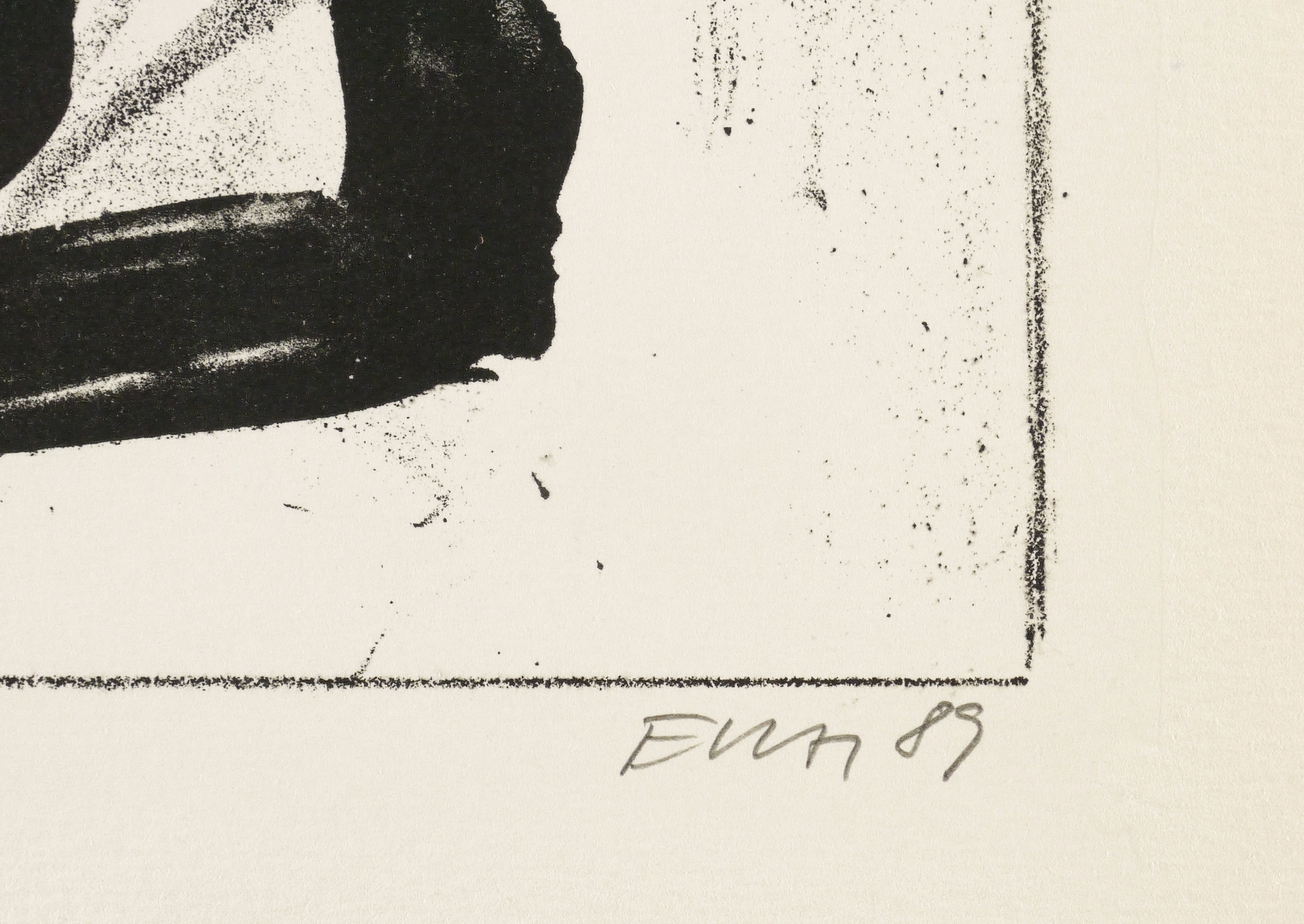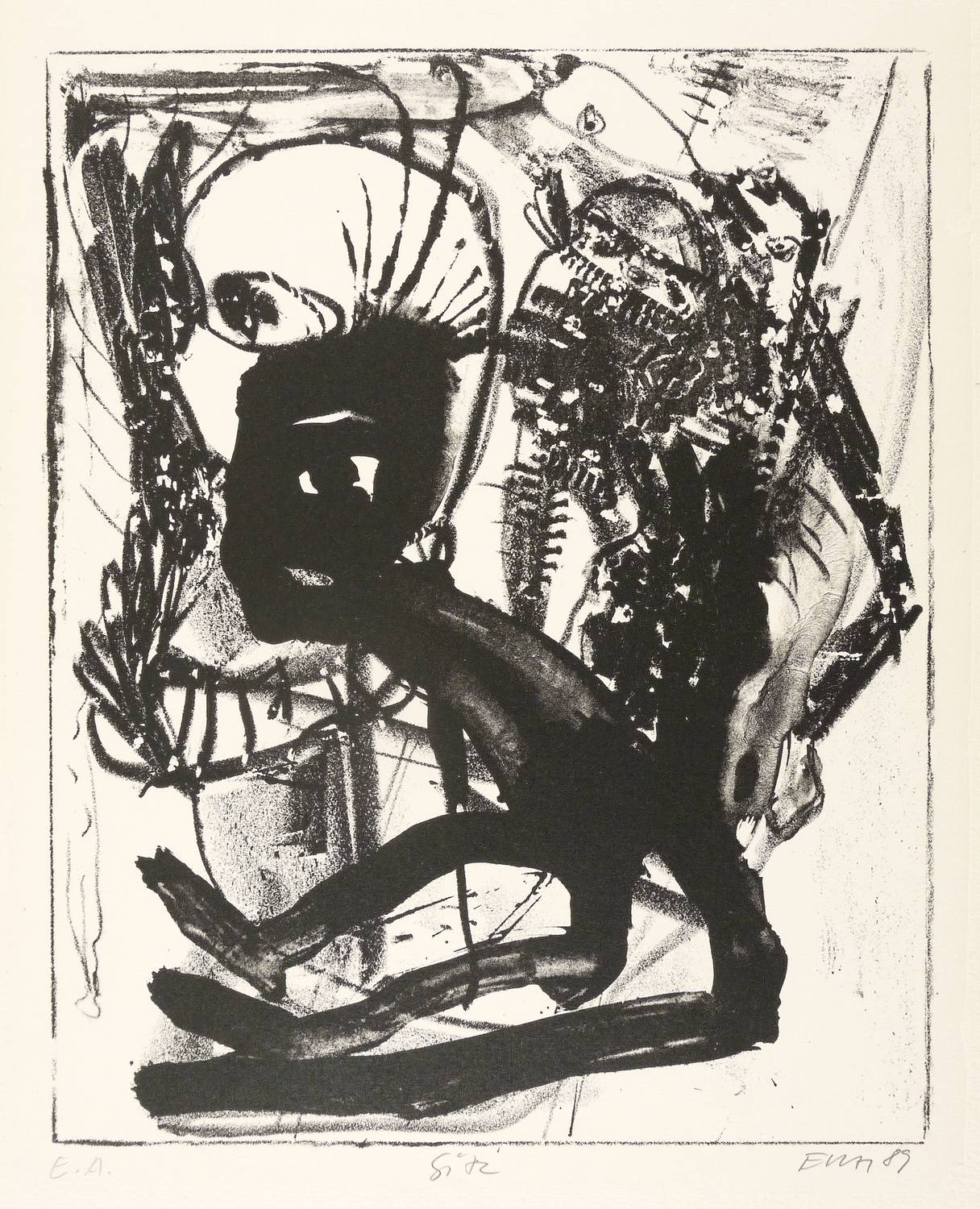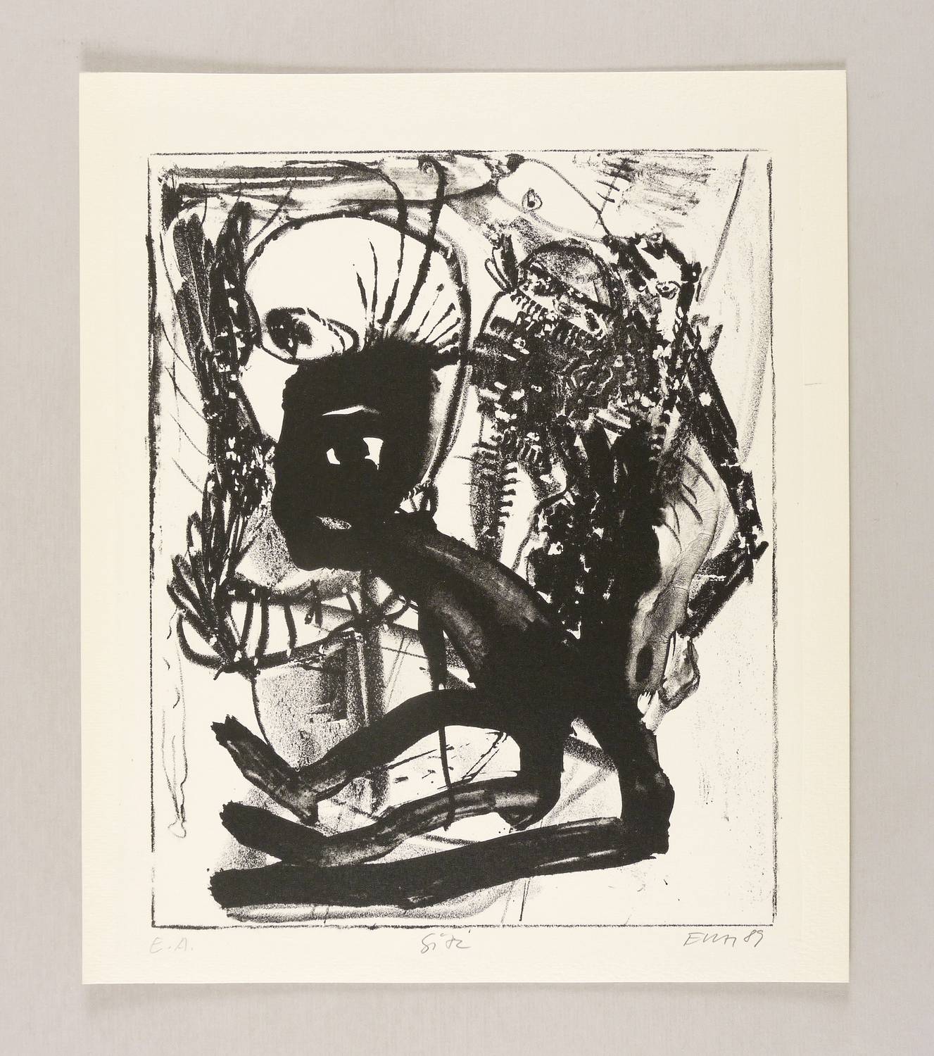 1989. Lithografie / Kreide- & Pinsellithografie, in Schwarz, auf hellchamois Kupferdruck. – Originale Künstlergrafik, von Erich-Wolfgang Hartzsch. – Künstlerexemplar (e.a.). – 30,0 x 24,1 cm (Darstellung / Druckbild), 36 x 30 cm (Blatt).
