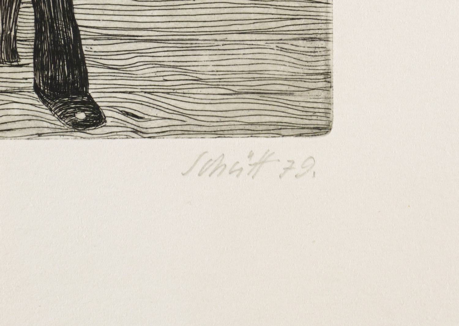 1979. Radierung / Strichätzung, in Schwarz, auf weißem Velinkarton. – Originale Künstlergrafik, von Franz Theodor Schütt. – Auflage Exemplar Nr. 19/100. – 29,5 x 20,0 cm (Darstellung / Platte), 40 x 30 cm (Blatt).