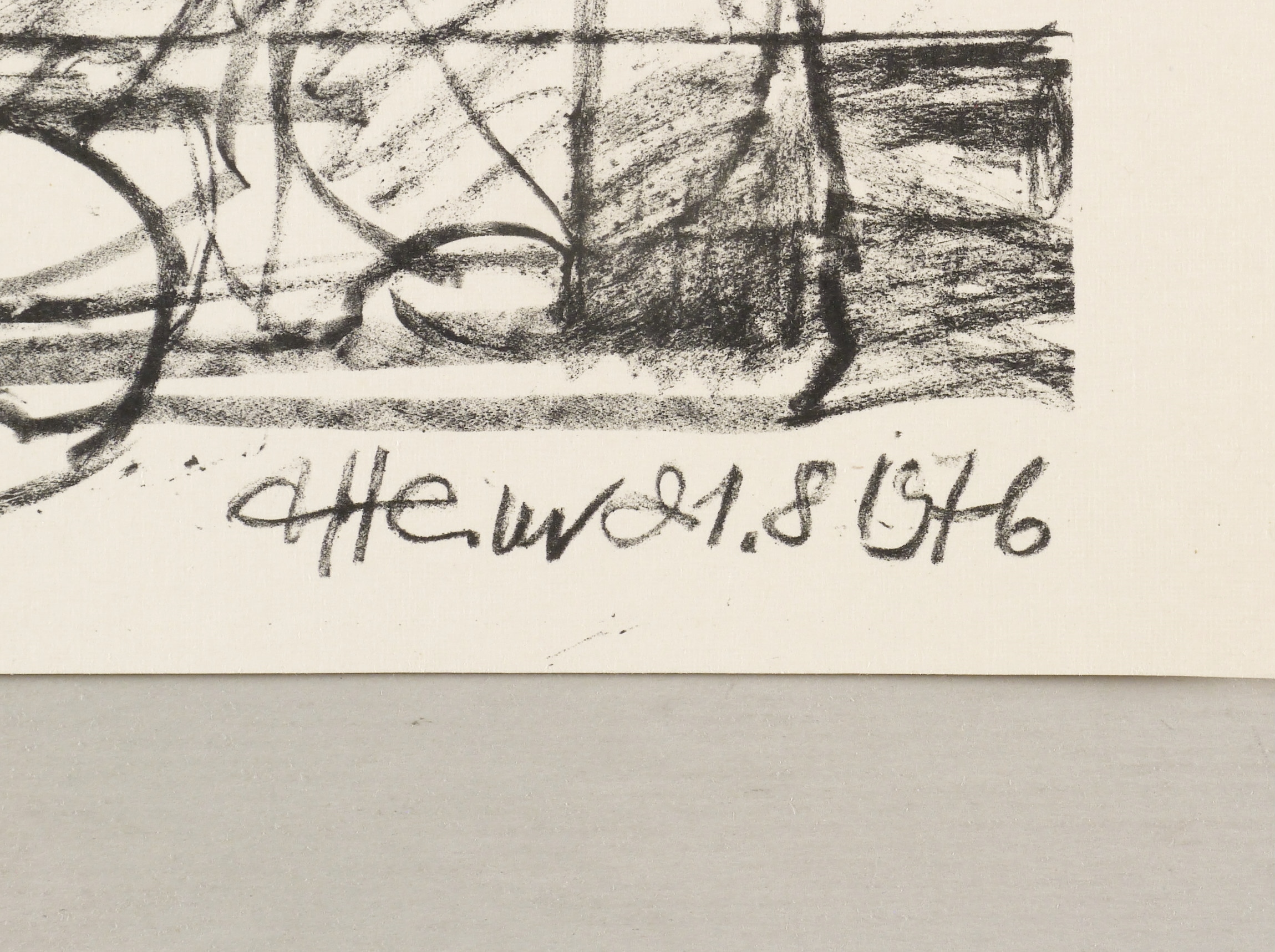 Nicht handsigniert. Im Stein rechts unten signiert und datiert: ″AHeim 21.8.1976″. – Sehr guter Zustand.