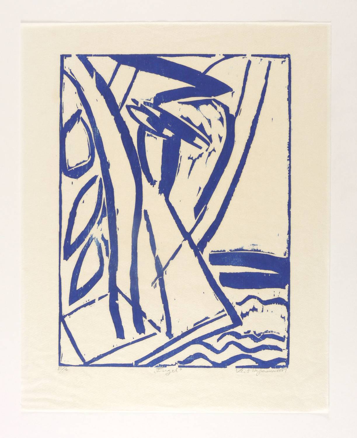 Rechts unten in Bleistift signiert und datiert: Veit Hofmann 2001″. Links Auflagenbezeichnung: ″E/A″. Mittig Titel: ″Engel″. – Unscheinbare Knickspuren im Rand. Insgesamt guter Zustand.