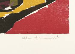 1992. Farbholzschnitt, in 5 Farben, auf weißem Werkdruck. – Originale Künstlergrafik, von Uta Zaumseil. – 36,2 x 45,0 cm (Darstellung / Druckstock), 45 x 57 cm (Blatt).