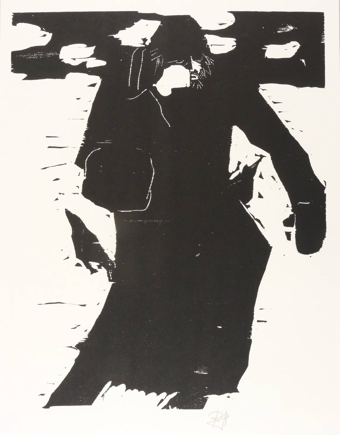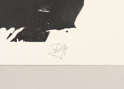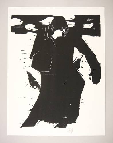 1999. Holzschnitt, in Schwarz, auf hartem weißem Velinkarton. – Originale Künstlergrafik, von Robert Hammerstiel. – 54,7 x 43,1 cm (Darstellung / Druckbild), 62 x 47 cm (Blatt).