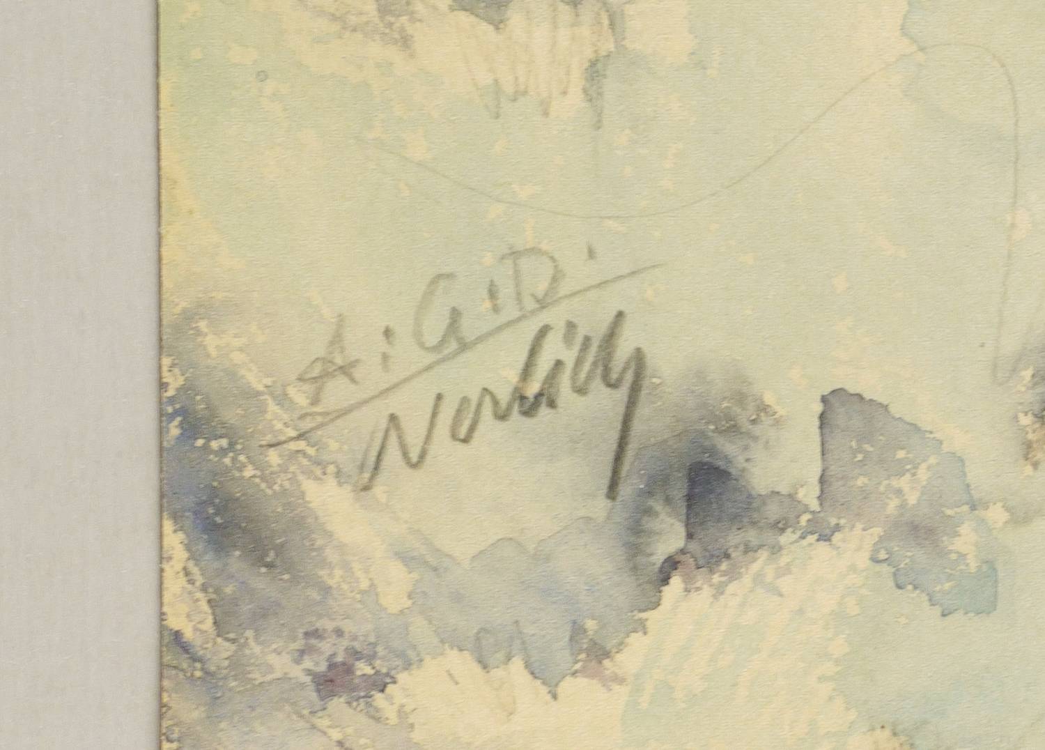 Um 1970. Aquarell, auf hellgelbem Aquarellkarton. – Originale Künstlergrafik, von Georg Nerlich. – Unikat. – 46,8 x 62,8 cm (Darstellung / Blatt).