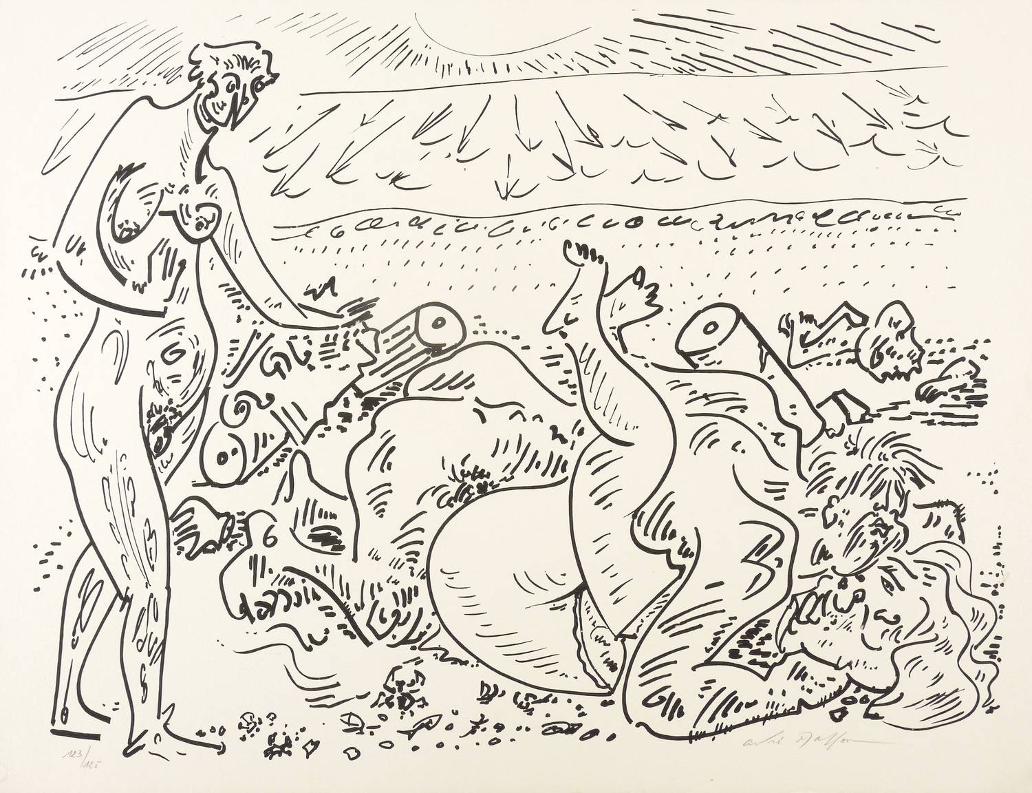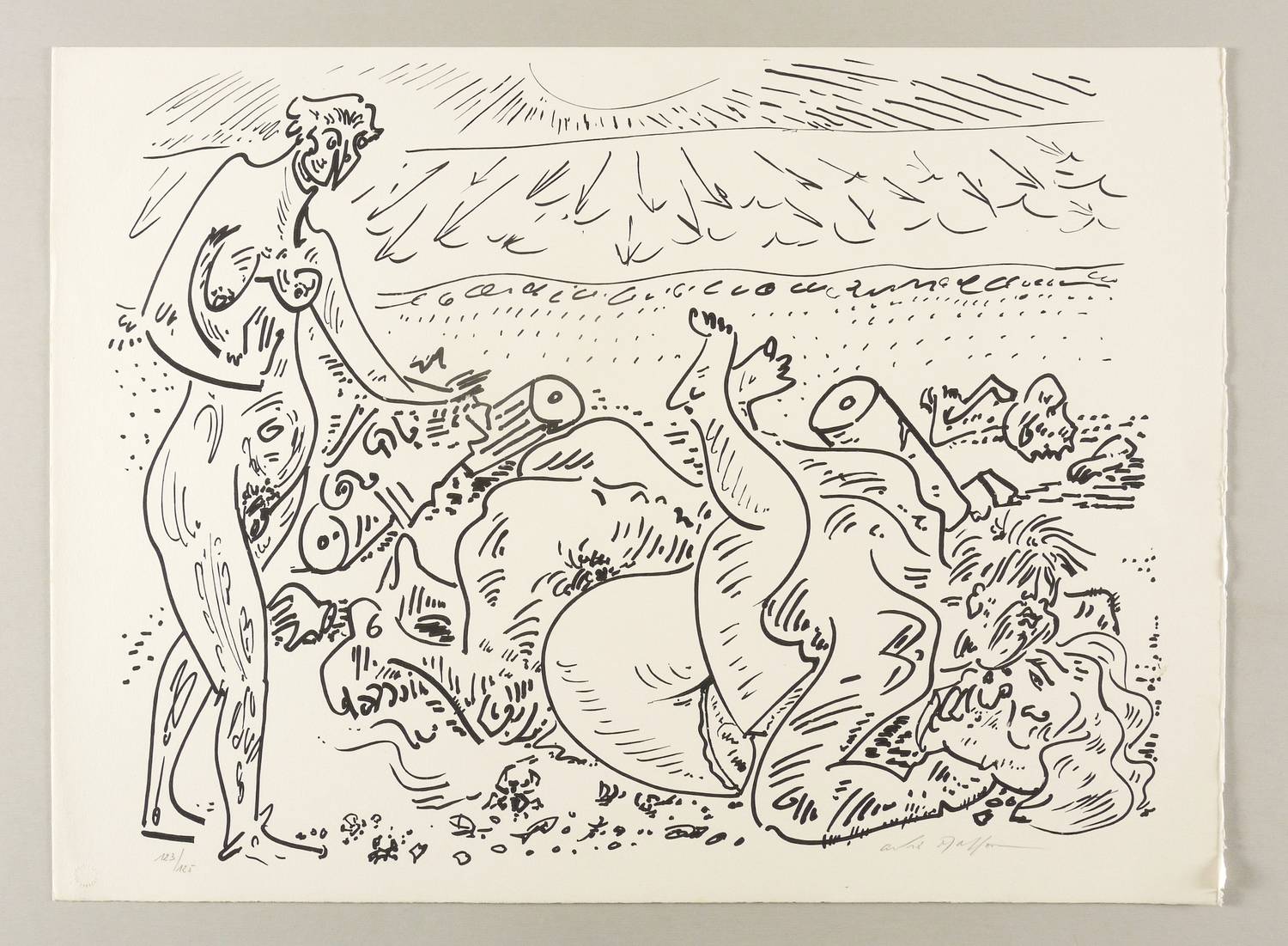 1970. Lithografie / Pinsellithografie, in Schwarz, auf hellchamois Velinkarton. – Originale Künstlergrafik, von André Masson. – Auflage Exemplar Nr. 123/125. – 45,3 x 58,8 cm (Darstellung / Druckbild), 49 x 66 cm (Blatt).
