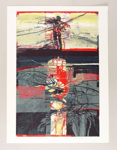 1990-2000. Farbholzschnitt, in 5 Farben, auf weißem Werkdruck. – Originale Künstlergrafik, von Per Odd Aarrestad. – 60,2 x 40,2 cm (Darstellung / Druckbild), 66 x 50 cm (Blatt).