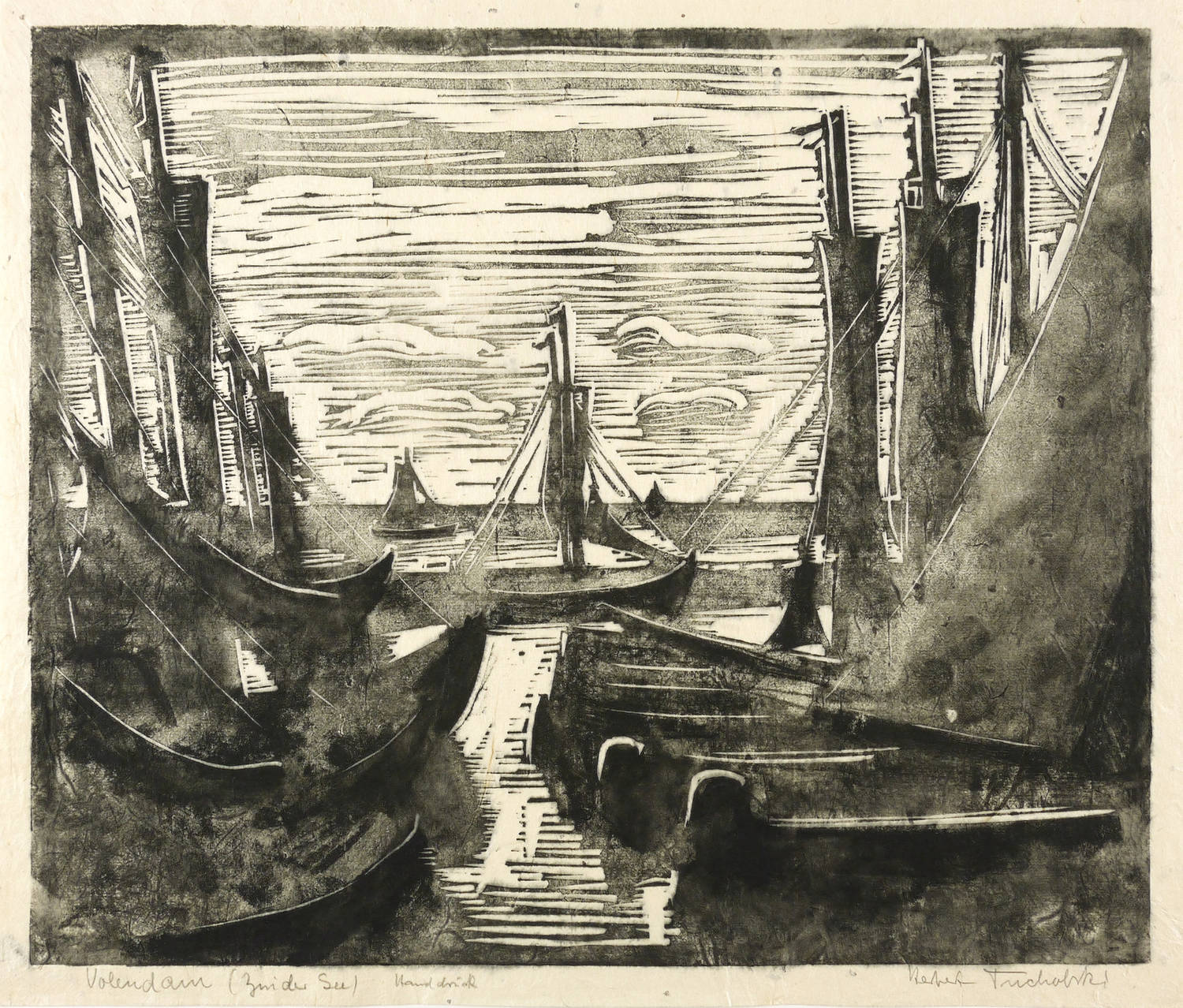 Karnahl 204. – Rechts unten in Bleistift signiert: ″Herbert Tucholski″. Links Titel: ″Volendam (Zuider See)″. Dazu Technikbezeichnung: ″Handdruck″. – Sehr guter Zustand.