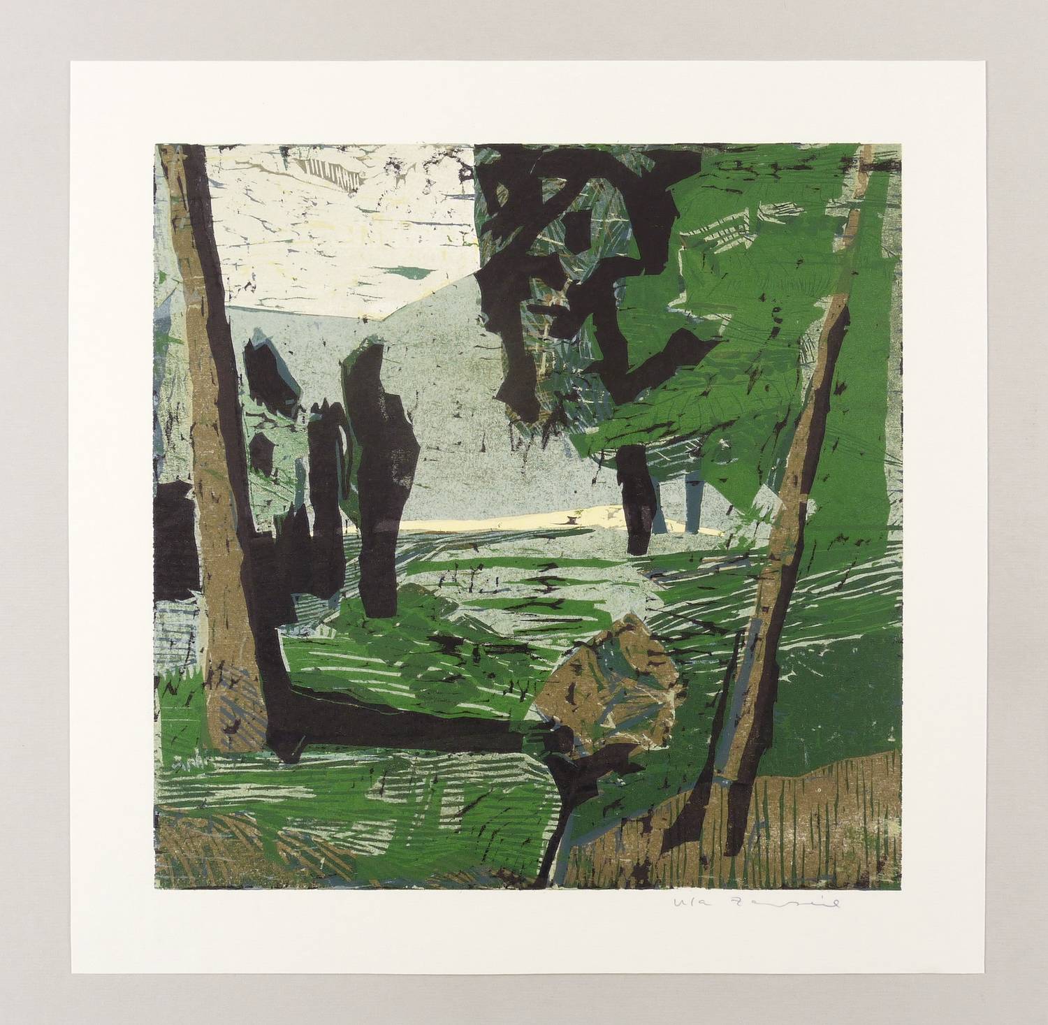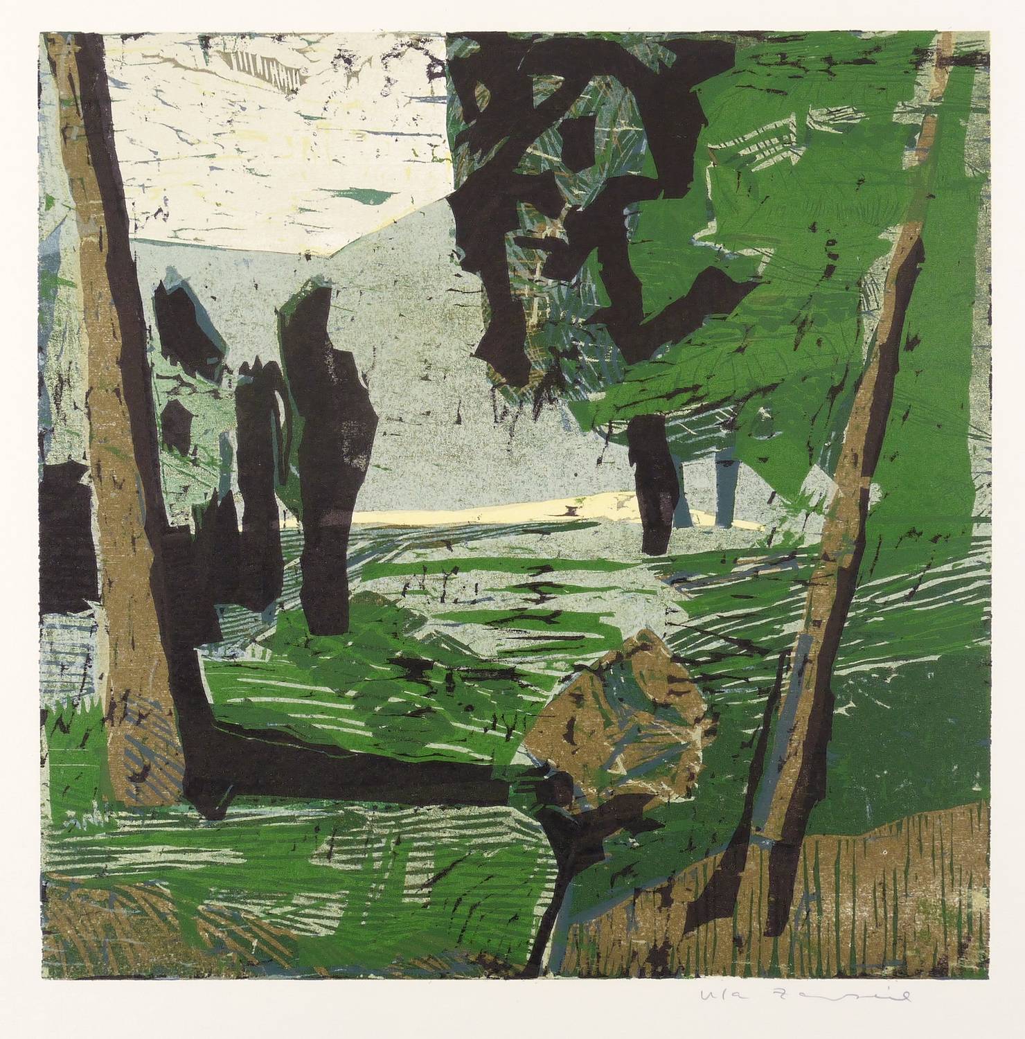 1991. Farbholzschnitt, in 7 Farben, auf weißem Werkdruck. – Originale Künstlergrafik, von Uta Zaumseil. – 40,1 x 40,2 cm (Darstellung / Druckbild), 50 x 50 cm (Blatt).