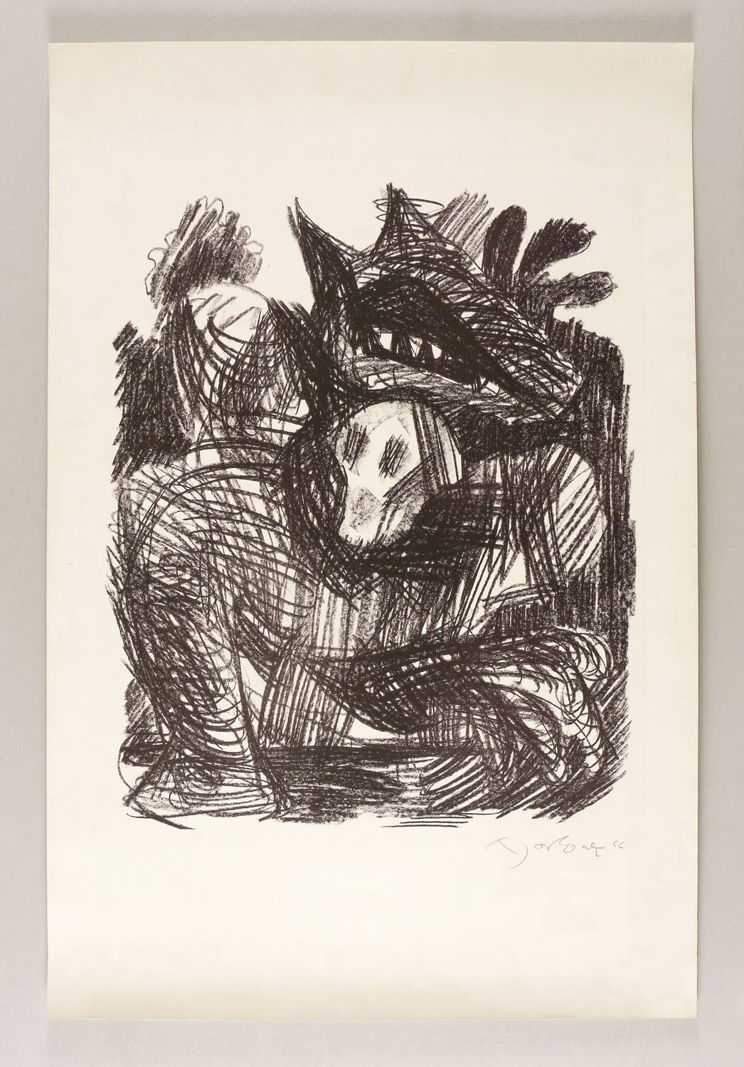 1966. Lithografie / Kreidelithografie, in Schwarz, auf festem gelblichem Kupferdruck. – Originale Künstlergrafik, von Günter Horlbeck. – Probedruck. – 50,0 x 40,5 cm (Darstellung / Druckbild), 76 x 51 cm (Blatt).