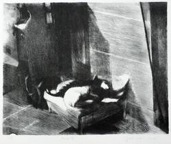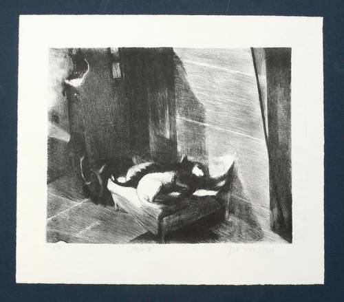2002. Lithografie / Kreidelithografie. – Originale Künstlergrafik, von Gabi Keil. – Auflage Exemplar Nr. 5/5. – 29,0 x 35,5 cm (Darstellung), 39,5 x 44,5 cm (Blatt).