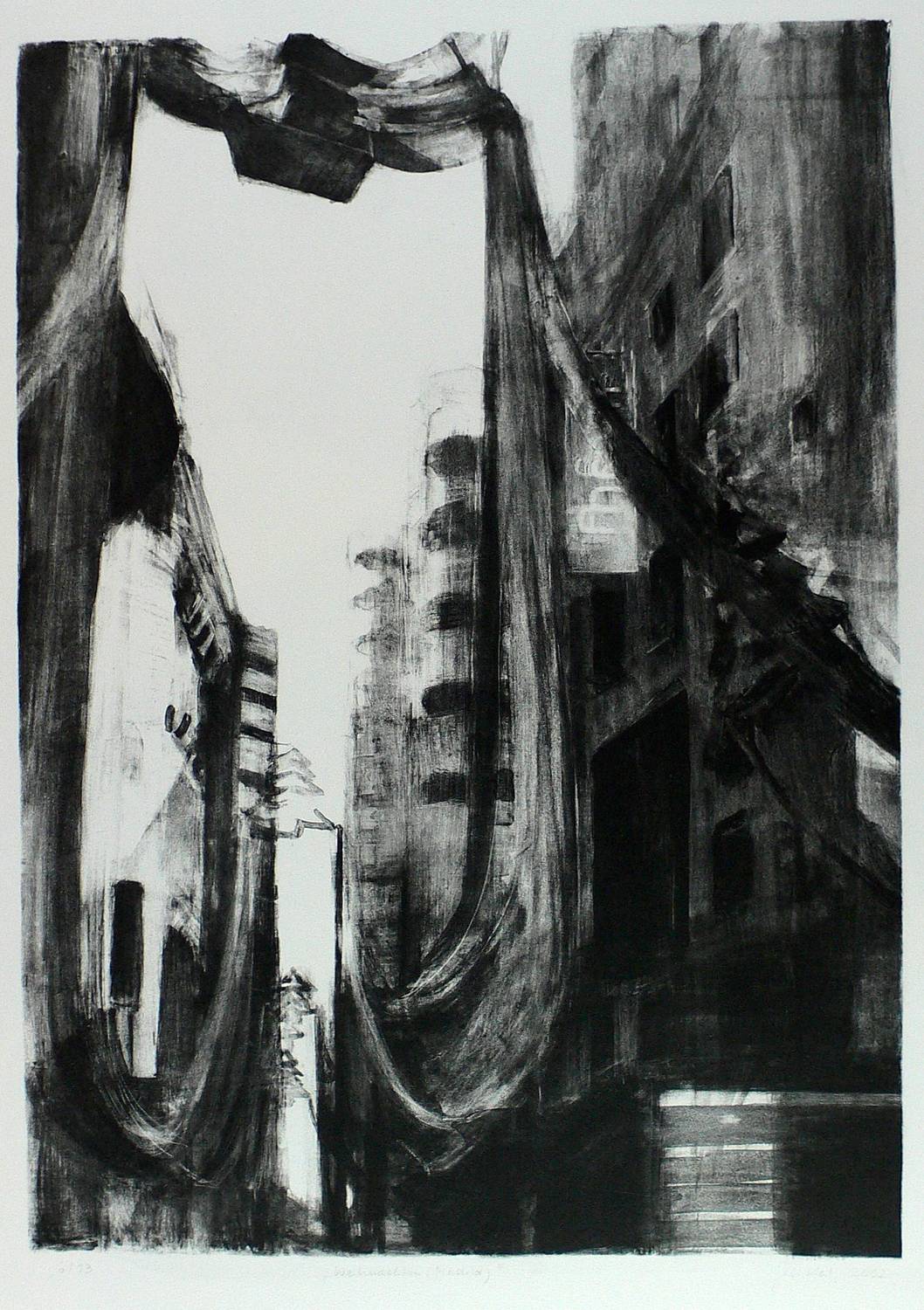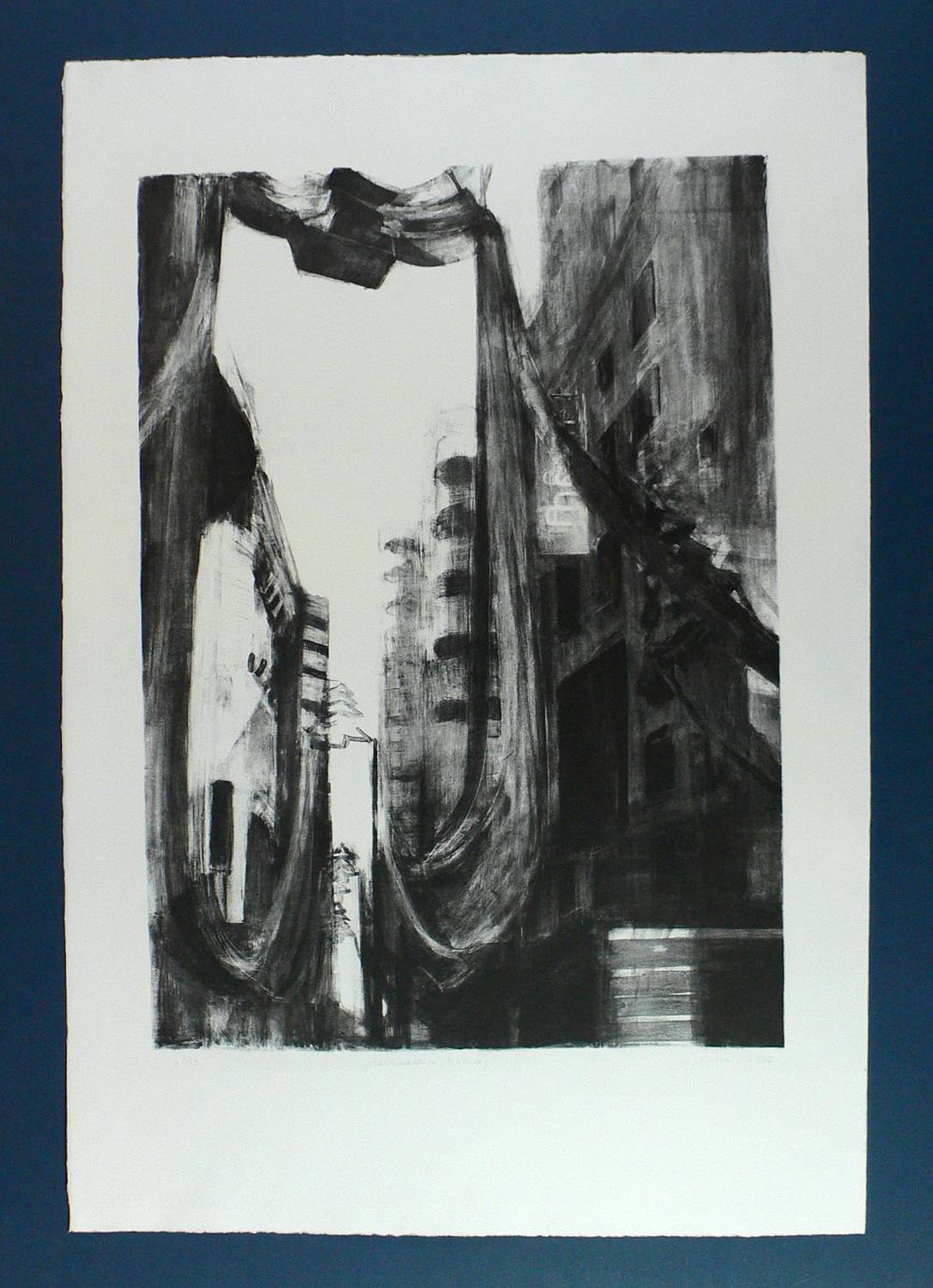 2002. Lithografie / Kreidelithografie, auf Hahnemühlebütten. – Originale Künstlergrafik, von Gabi Keil. – Auflage Exemplar Nr. 6/13. – 58,5 x 42,0 cm (Darstellung), 78,5 x 53 cm (Blatt).