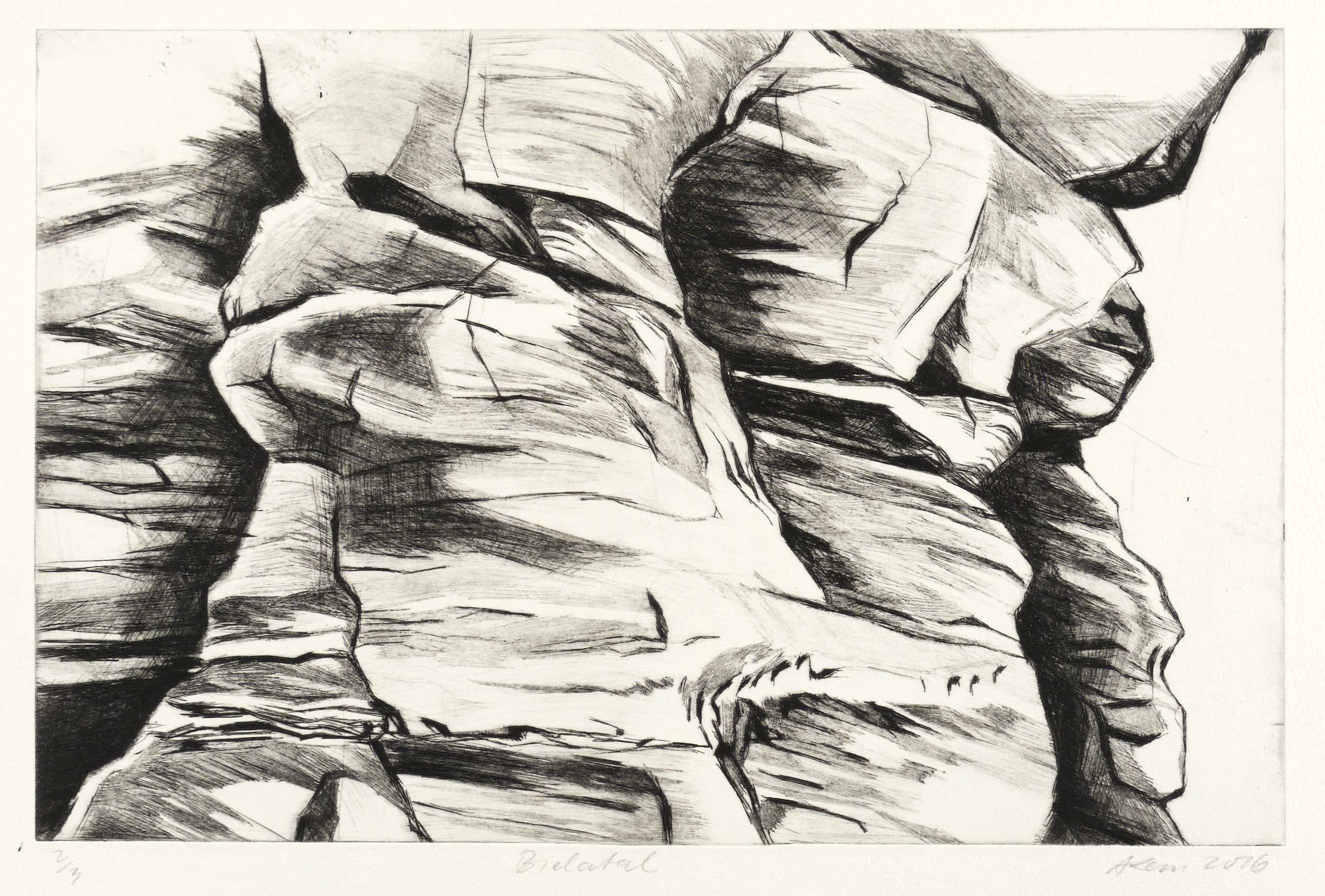 2016. Radierung / Kaltnadel & Strichätzung, in Schwarz, auf Büttenpapier. – Originale Künstlergrafik, von Anne Kern. – Auflage Exemplar Nr. 2/3. – 19,5 x 29,8 cm (Darstellung / Platte), 26,5 x 39,5 cm (Blatt).
