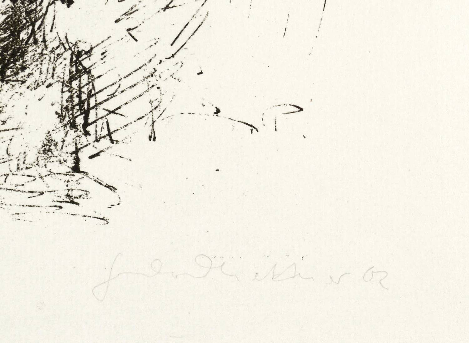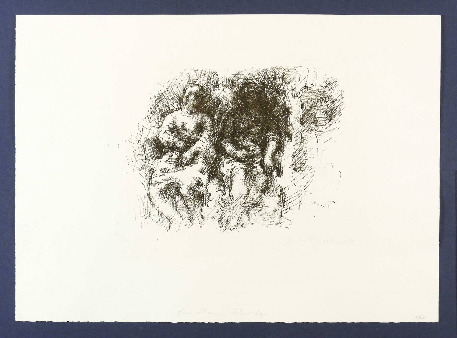 1962. Lithografie / Federlithografie, in Schwarz, auf hellgelbem Büttenkarton. – Originale Künstlergrafik, von Gerhard Kettner. – Auflage Exemplar Nr. 23/30. – 19,5 x 27,0 cm (Darstellung / Druckbild), 37 x 50 cm (Blatt).