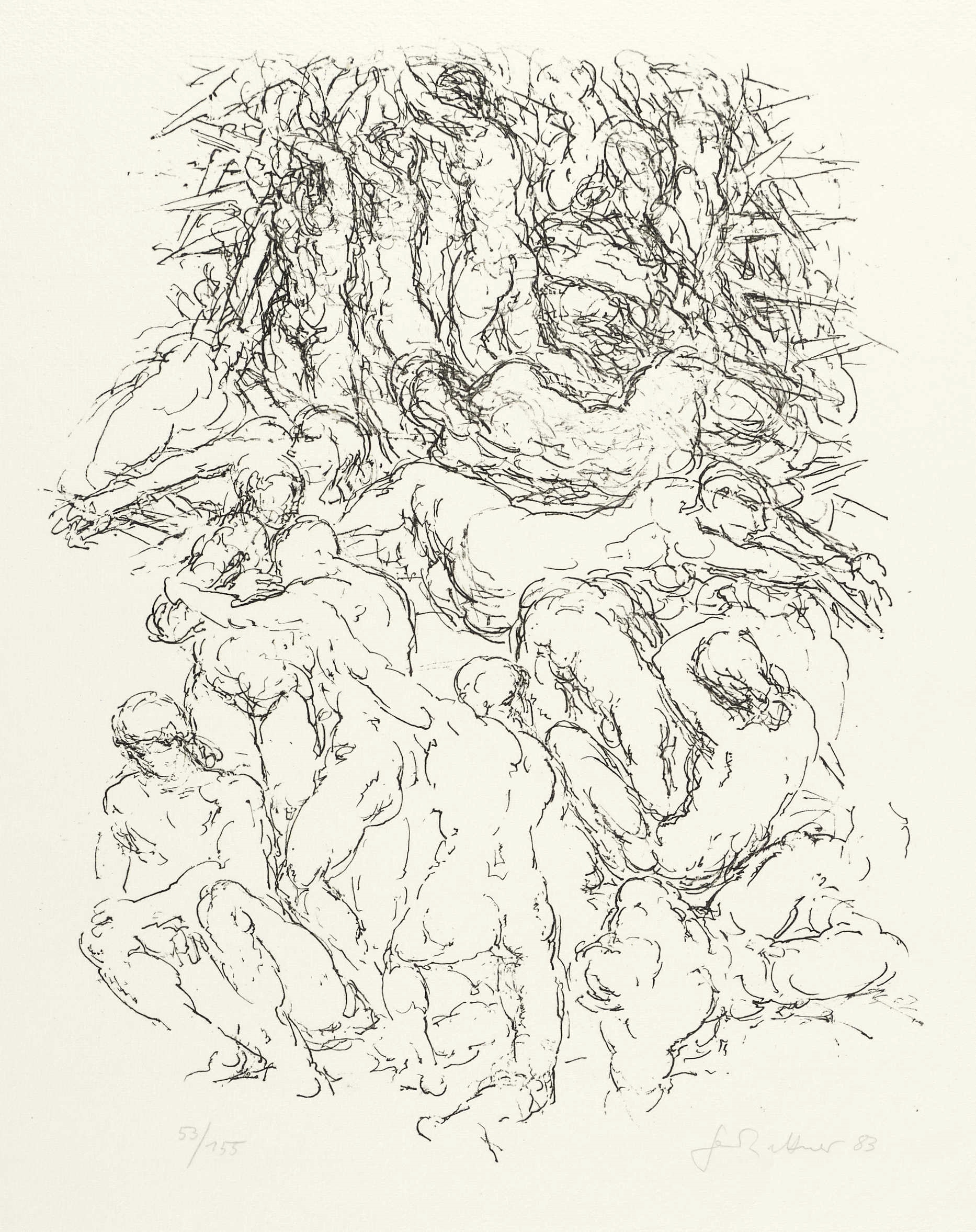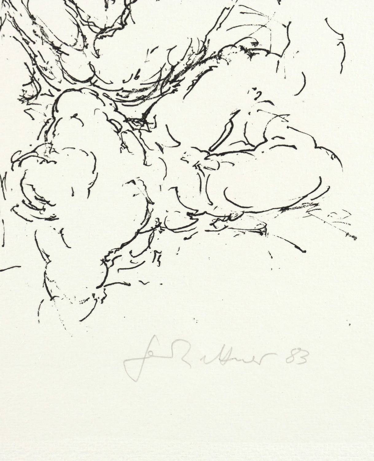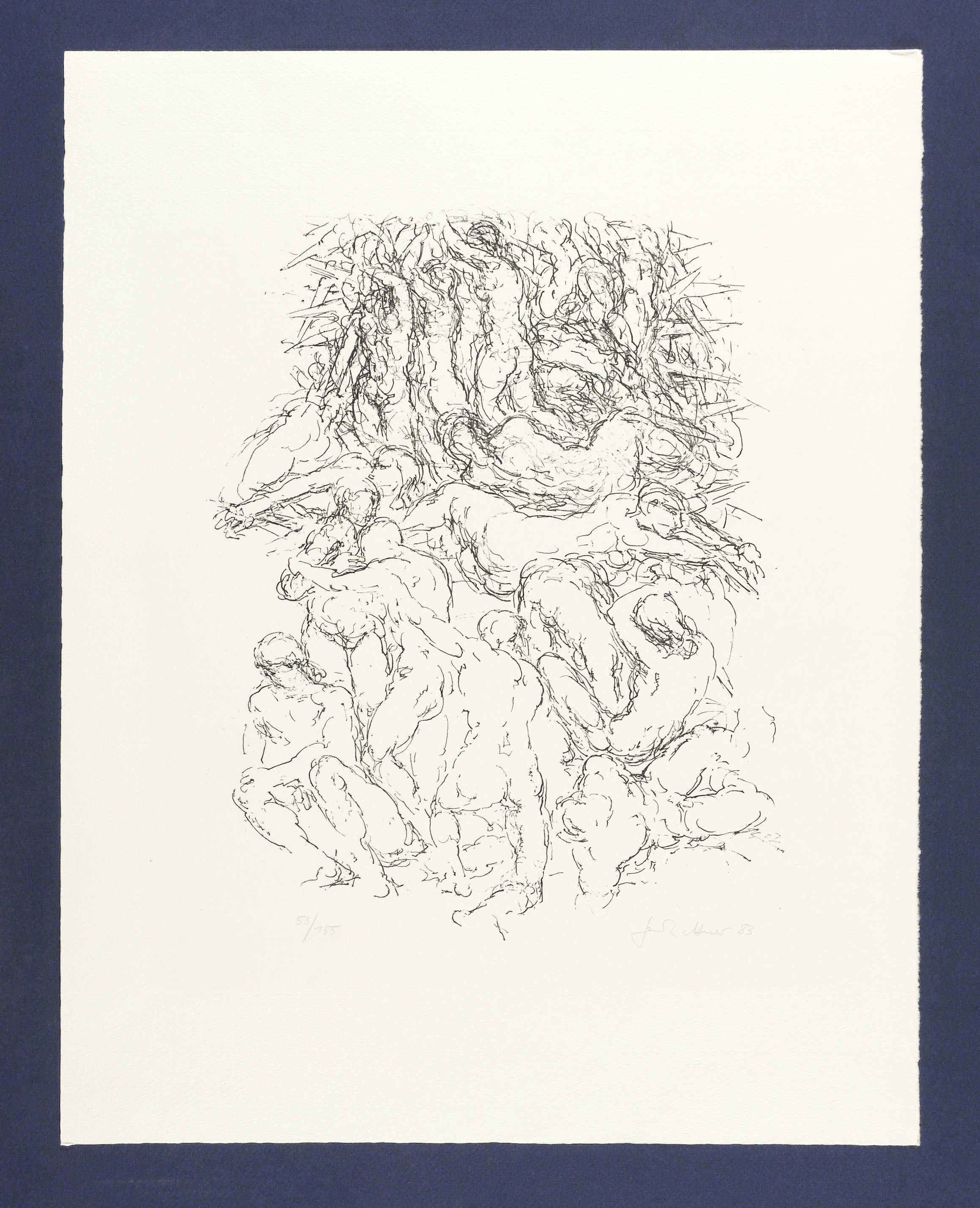 1983. Lithografie / Federlithografie, in Schwarz, auf hellgelbem Hahnemühle-Bütten. – Originale Künstlergrafik, von Gerhard Kettner. – Auflage Exemplar Nr. 53/155. – 33,5 x 25,0 cm (Darstellung / Druckbild), 50 x 39 cm (Blatt).
