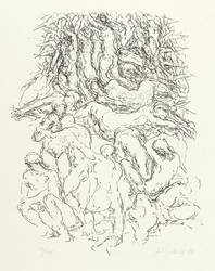 Gerhard Kettner (1928 Mumsdorf / Meuselwitz - 1993 Dresden). Deutscher Zeichner und Grafiker. Bedeutender Vertreter der Dresdner Kunst sowie der Zeichenkunst in der DDR. 1943/44 Lehre zum Lithograf in der Spielkartenfabrik Altenburg. 1944/45 Militärdienst und Kriegsgefangenschaft. 1948 Zeichenunterricht an der Lindenau-Museumsschule bei Heinrick Burkhardt. 1949-51 Studium an der Hochschule für Baukunst und bildende Künste Weimar bei Otto Herbig und Hans van Breek. 1951-53 Studium an der Hochschule für Bildende Künste (HfBK) Dresden bei Hans Grundig. 1953 Grafik-Diplom bei Max Schwimmer. 1953-55 Assistent bei Hans-Theo Richter. 1956-61 Aspirantur für Grafik bei Max Schwimmer und Assistenz in der Abteilung Kunsterziehung der HfBK. 1961-65 Dozent dieser Abteilung. 1965-68 Dozent für Zeichnen im Grundstudium der HfBK. 1968/69 Leitung des Grundlagenstudiums Malerei/Grafik. 1969 Berufung zum Professor an der HfBK Dresden. 1970-74 und 1979-81 Rektor der HfBK Dresden. 1988 dreimonatige Gastprofessur an der Akademie der Bildenden Künste Wien.