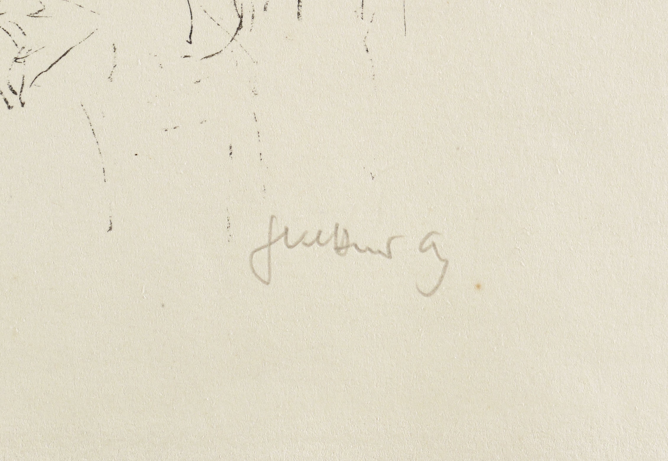 1969. Lithografie / Federlithografie, in Schwarz, auf hellchamois Velinkarton. – Originale Künstlergrafik, von Gerhard Kettner. – 49,0 x 36,6 cm (Darstellung / Druckbild), 58 x 43 cm (Blatt).