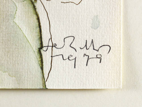 1979. Zeichnung / Federzeichnung & Aquarell, auf hellchamois Velin. – Originale Künstlergrafik, von Gerhard Kettner. – Unikat. – 9,6 x 11,3 cm (Darstellung / Blatt), 16 x 21 cm (Trägerkarton).