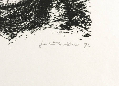 1972. Lithografie / Federlithografie, in Schwarz, auf hellgelbem Kupferdruckpapier. – Originale Künstlergrafik, von Gerhard Kettner. – Auflage Exemplar Nr. 20/25. – 19,2 x 19,1 cm (Darstellung / Druckbild), 38 x 34 cm (Blatt).