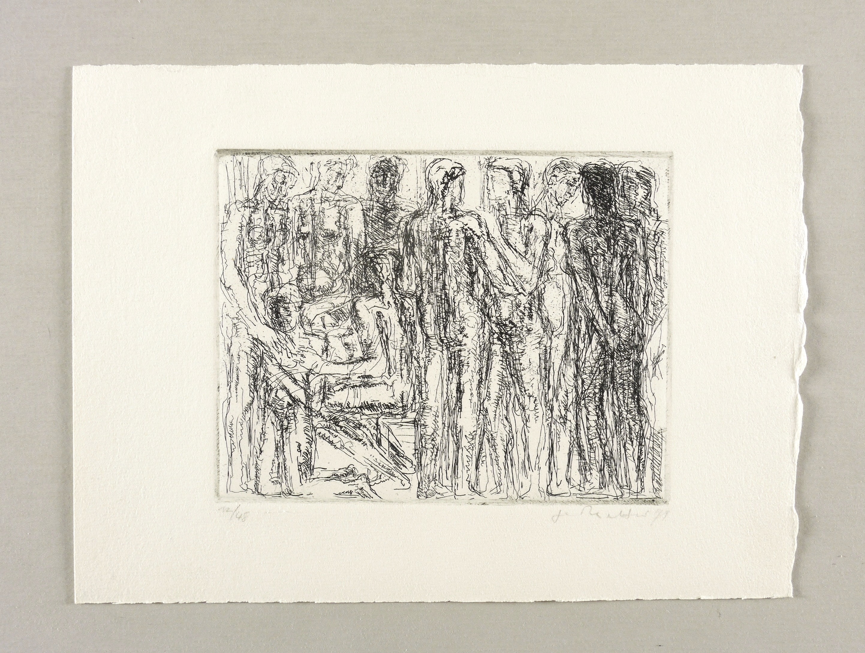 Gerhard Kettner (1928 Mumsdorf / Meuselwitz - 1993 Dresden). Deutscher Zeichner und Grafiker. Bedeutender Vertreter der Dresdner Kunst sowie der Zeichenkunst in der DDR. 1943/44 Lehre zum Lithograf in der Spielkartenfabrik Altenburg. 1944/45 Militärdienst und Kriegsgefangenschaft. 1948 Zeichenunterricht an der Lindenau-Museumsschule bei Heinrick Burkhardt. 1949-51 Studium an der Hochschule für Baukunst und bildende Künste Weimar bei Otto Herbig und Hans van Breek. 1951-53 Studium an der Hochschule für Bildende Künste (HfBK) Dresden bei Hans Grundig. 1953 Grafik-Diplom bei Max Schwimmer. 1953-55 Assistent bei Hans-Theo Richter. 1956-61 Aspirantur für Grafik bei Max Schwimmer und Assistenz in der Abteilung Kunsterziehung der HfBK. 1961-65 Dozent dieser Abteilung. 1965-68 Dozent für Zeichnen im Grundstudium der HfBK. 1968/69 Leitung des Grundlagenstudiums Malerei/Grafik. 1969 Berufung zum Professor an der HfBK Dresden. 1970-74 und 1979-81 Rektor der HfBK Dresden. 1988 dreimonatige Gastprofessur an der Akademie der Bildenden Künste Wien.