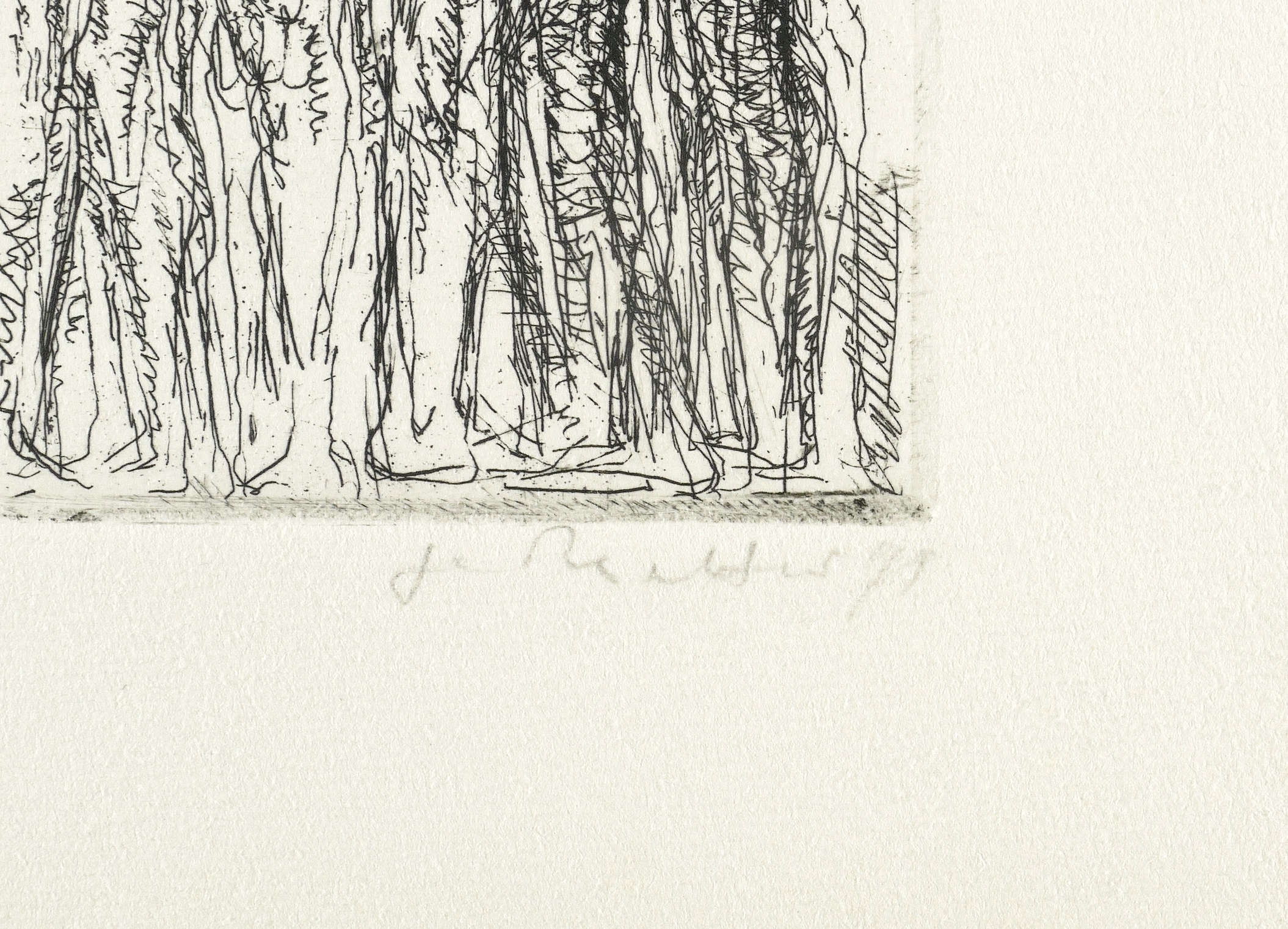 1975. Radierung / Strichätzung, in Schwarz, auf schwerem hellchamois Velin. – Originale Künstlergrafik, von Gerhard Kettner. – Auflage Exemplar Nr. 12/48. – 12,9 x 16,5 cm (Darstellung / Platte), 20 x 27 cm (Blatt).
