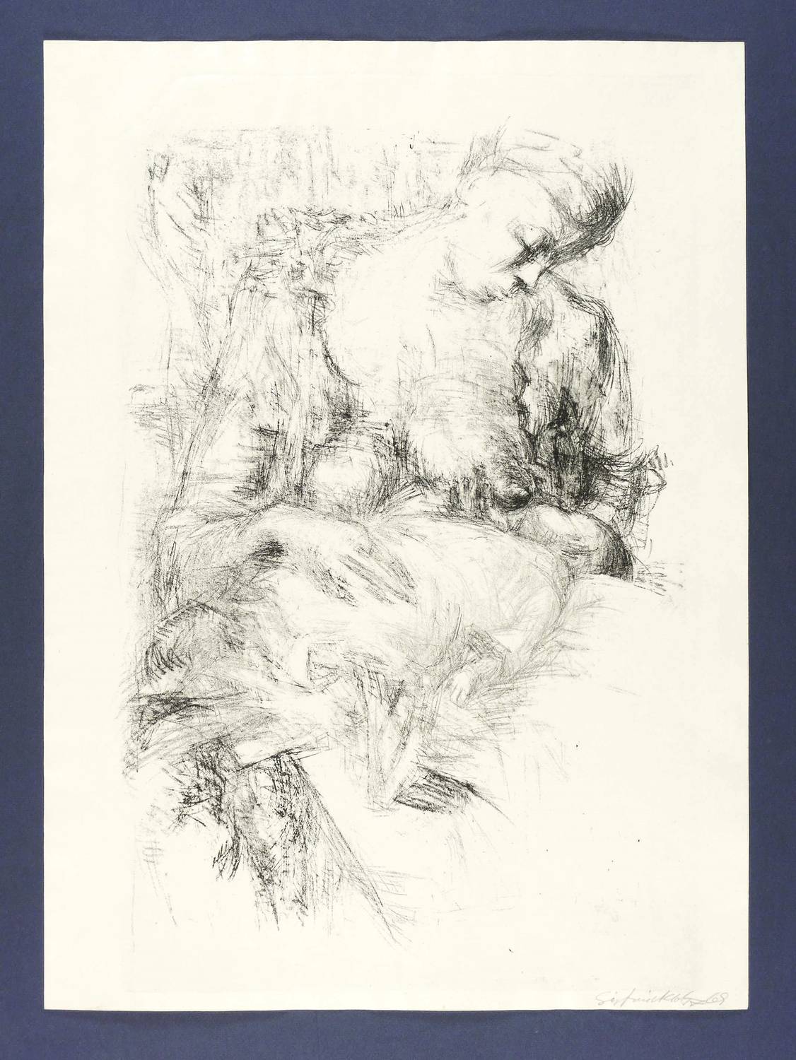 1969. Lithografie / Kreidelithografie, in Schwarz, auf hartem hellem Weißenborn-Bütten. – Originale Künstlergrafik, von Siegfried Klotz. – 46,8 x 32,1 cm (Darstellung / Druckbild), 55 x 40 cm (Blatt).