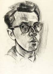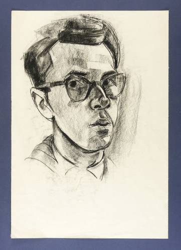 1960-1965. Zeichnung / Kohlezeichnung, auf gelbem Zeichenkarton. – Originale Künstlergrafik, von Siegfried Klotz. – Unikat. – 45,0 x 32,5 cm (Darstellung), 61 x 42 cm (Blatt).