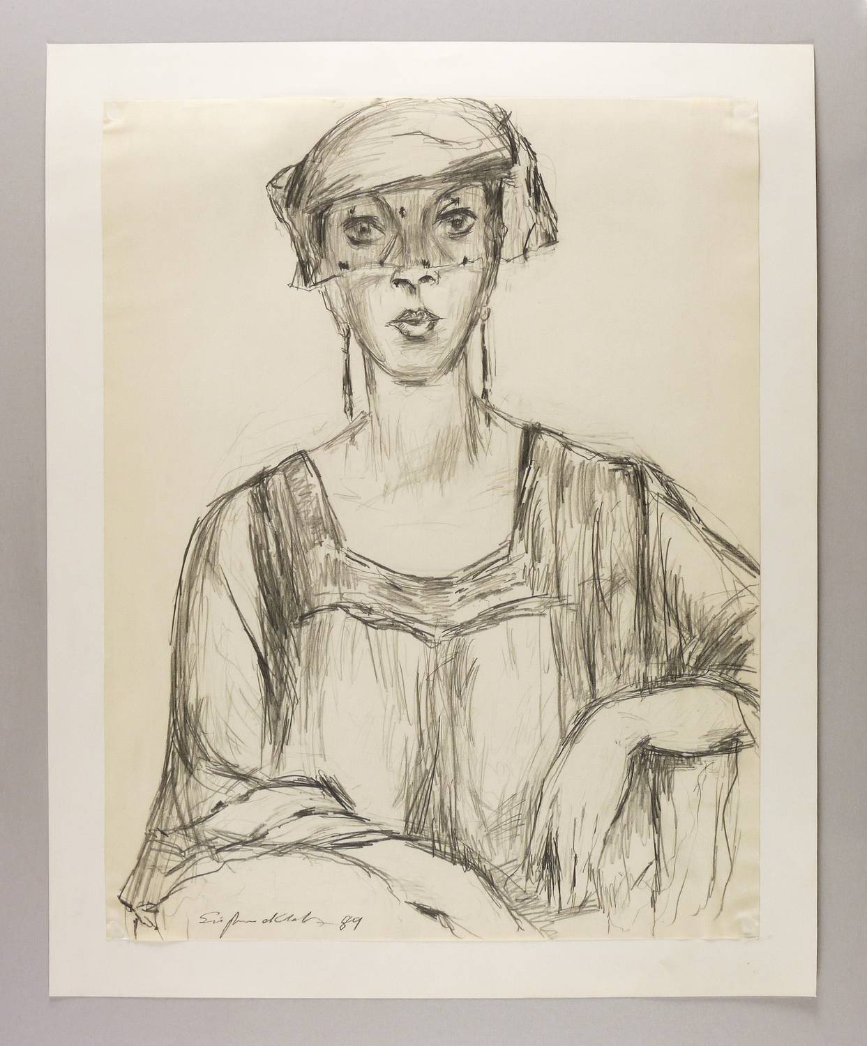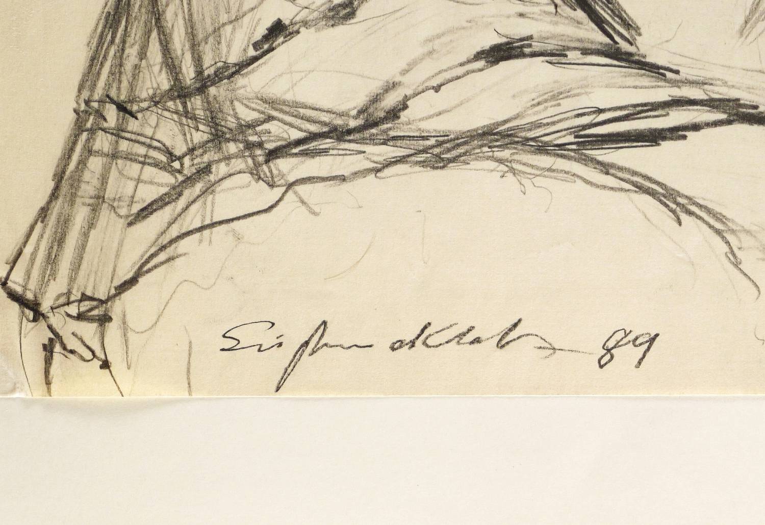 1989. Zeichnung / Graphitzeichnung, auf hartem hellchamois Velin. – Originale Künstlergrafik, von Siegfried Klotz. – Unikat. – 63,5 x 49,5 cm (Darstellung / Blatt), 72 x 58 cm (Trägerkarton).