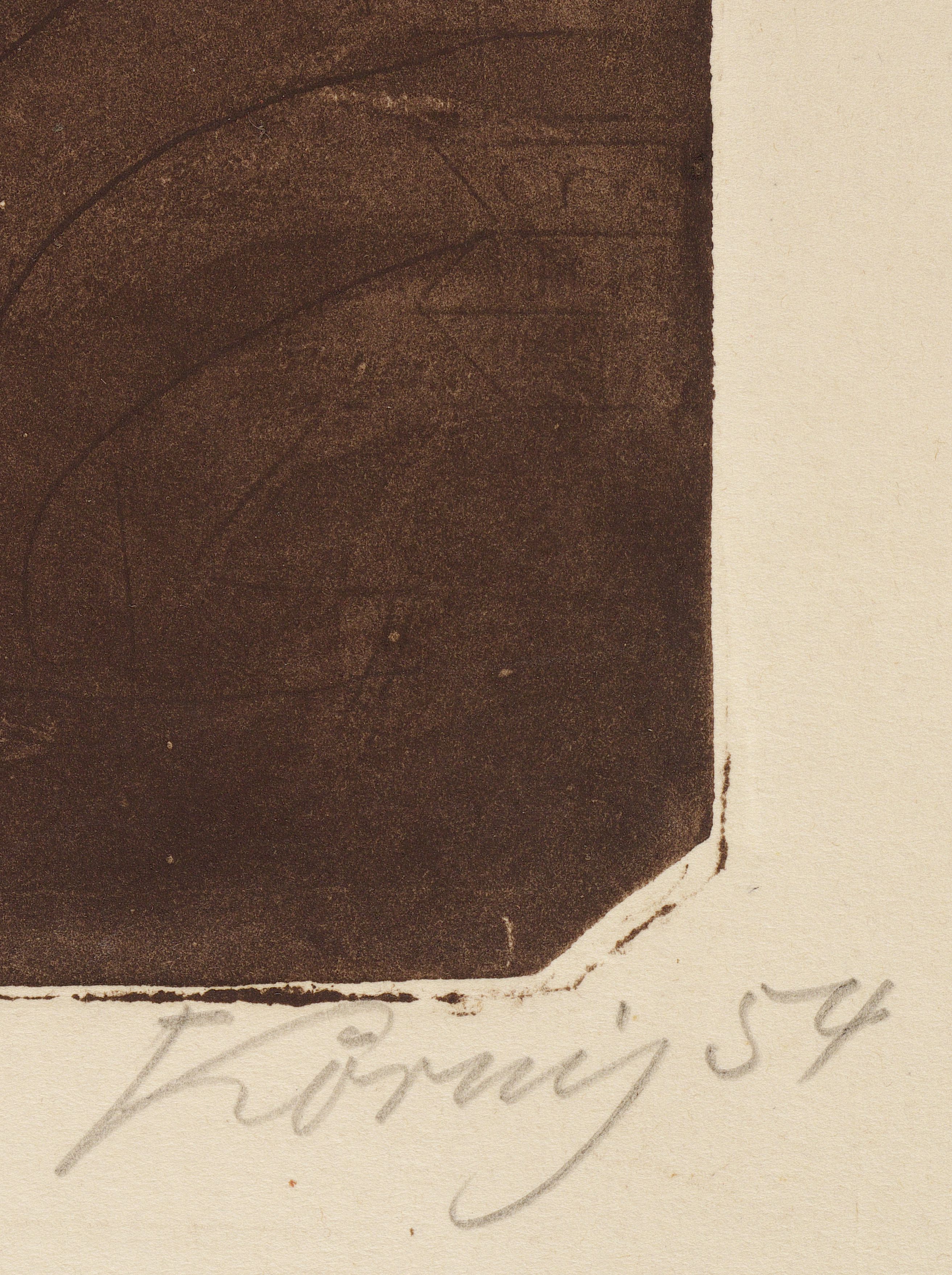 1954. Radierung / Aquatinta, in Braun, auf gelblichem Velinkarton. – Originale Künstlergrafik, von Hans Körnig. – 31,7 x 27,0 cm (Darstellung / Platte), 43 x 37 cm (Blatt).