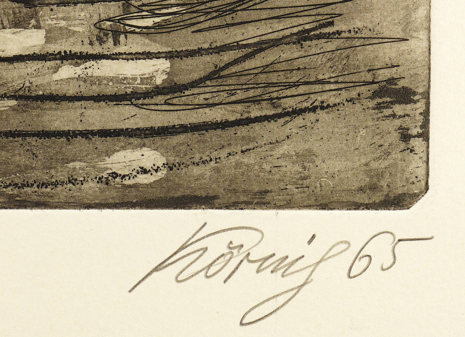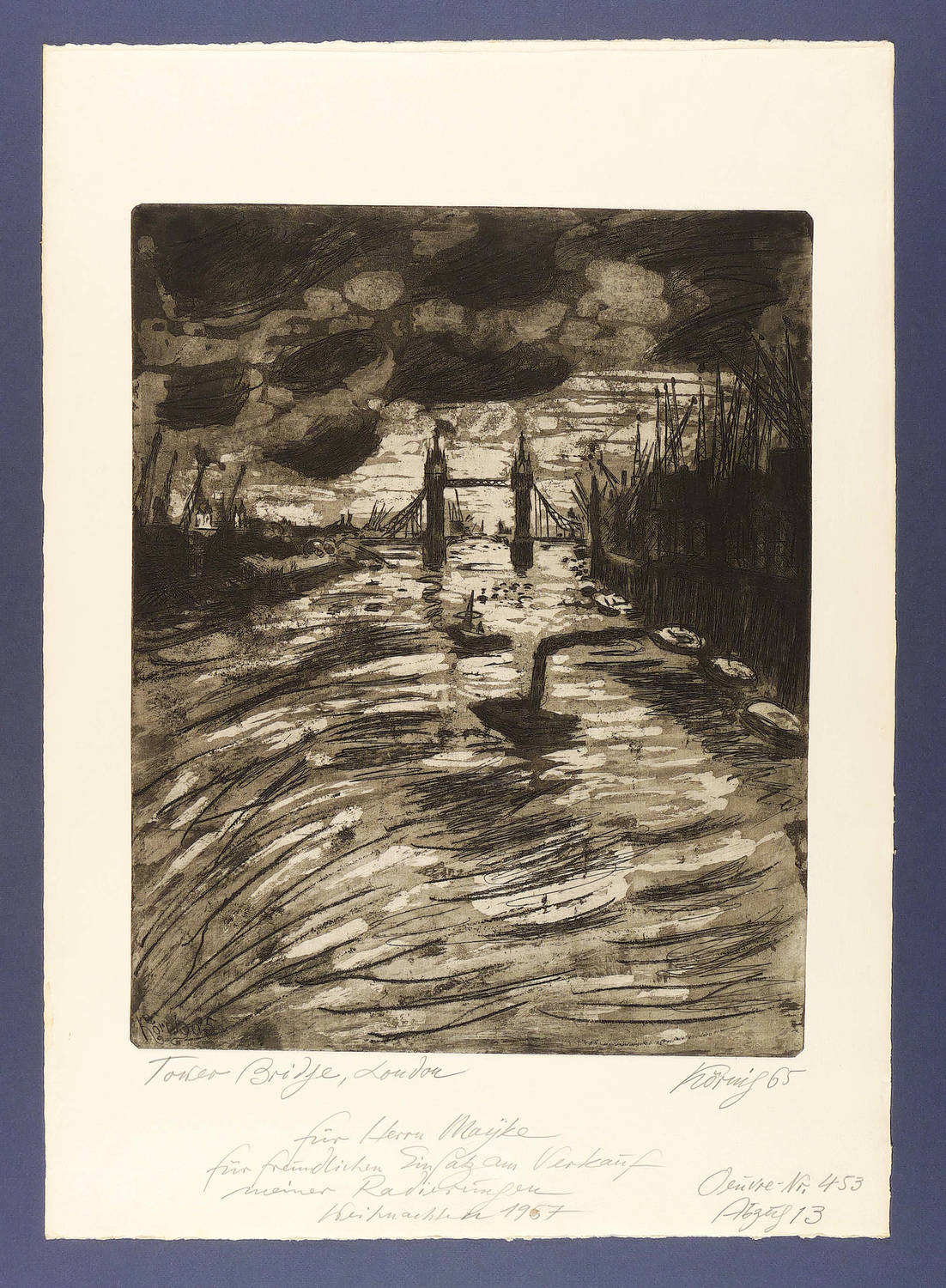 In Bleistift rechts unten signiert und datiert: ″Körnig 65″. Links Titel. Im unteren Blattrand persönliche Widmung. Rechts unten bezeichnet: ″Oeuvre-Nr. 453 / Abzug 13″. – Ohne Tadel. Sehr guter Zustand.
