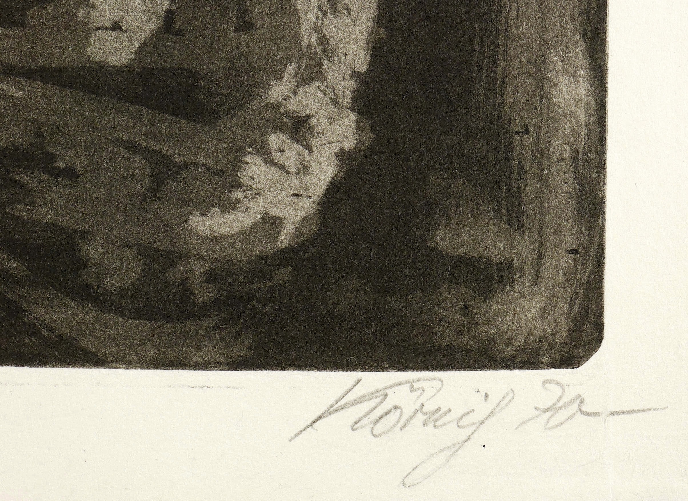 1970. Radierung / Aquatinta & Strichätzung, in Schwarz, auf kräftigem Büttenkarton. – Originale Künstlergrafik, von Hans Körnig. – 65,8 x 45,0 cm (Darstellung / Platte), 70 x 51 cm (Blatt).