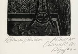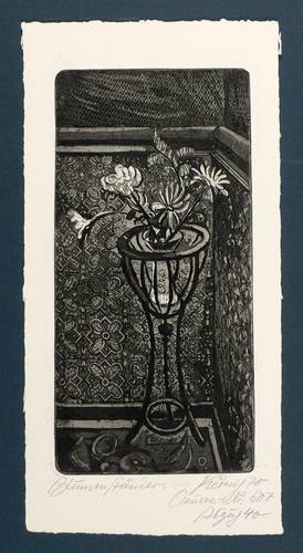 1970. Radierung / Aquatinta, in Schwarz, auf weißem Velinkarton. – Originale Künstlergrafik, von Hans Körnig. – Auflage Exemplar Nr. 40. – 23,5 x 11,5 cm (Darstellung / Platte), 30 x 15 cm (Blatt).
