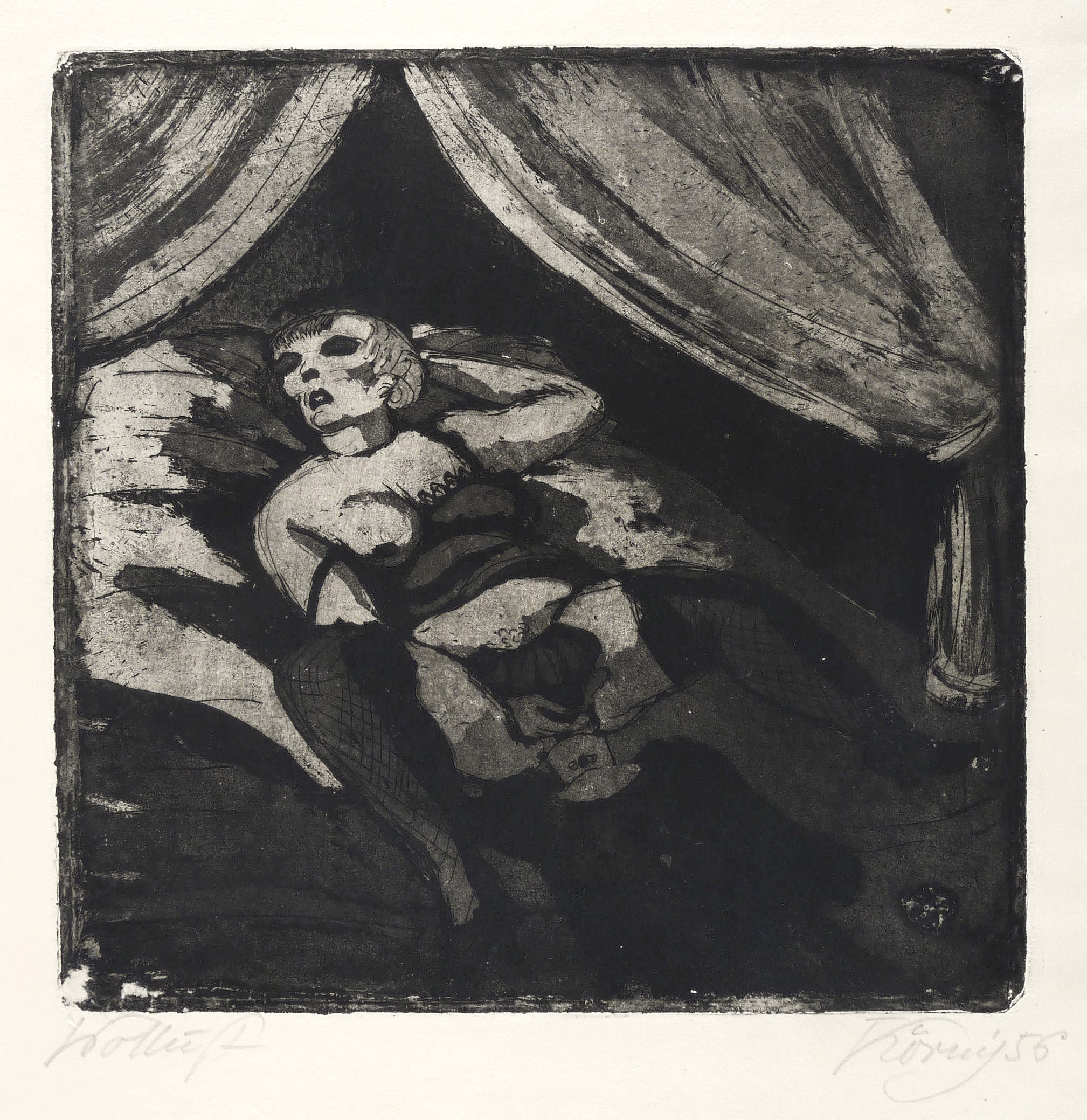 Rechts unten in Bleistift signiert und datiert: ″Körnig 56″. Links Titel: ″Wollust″. – Papier im Blattrand etwas gewellt und mit leichten Lagerspuren. Insgesamt guter Zustand.