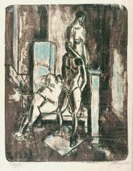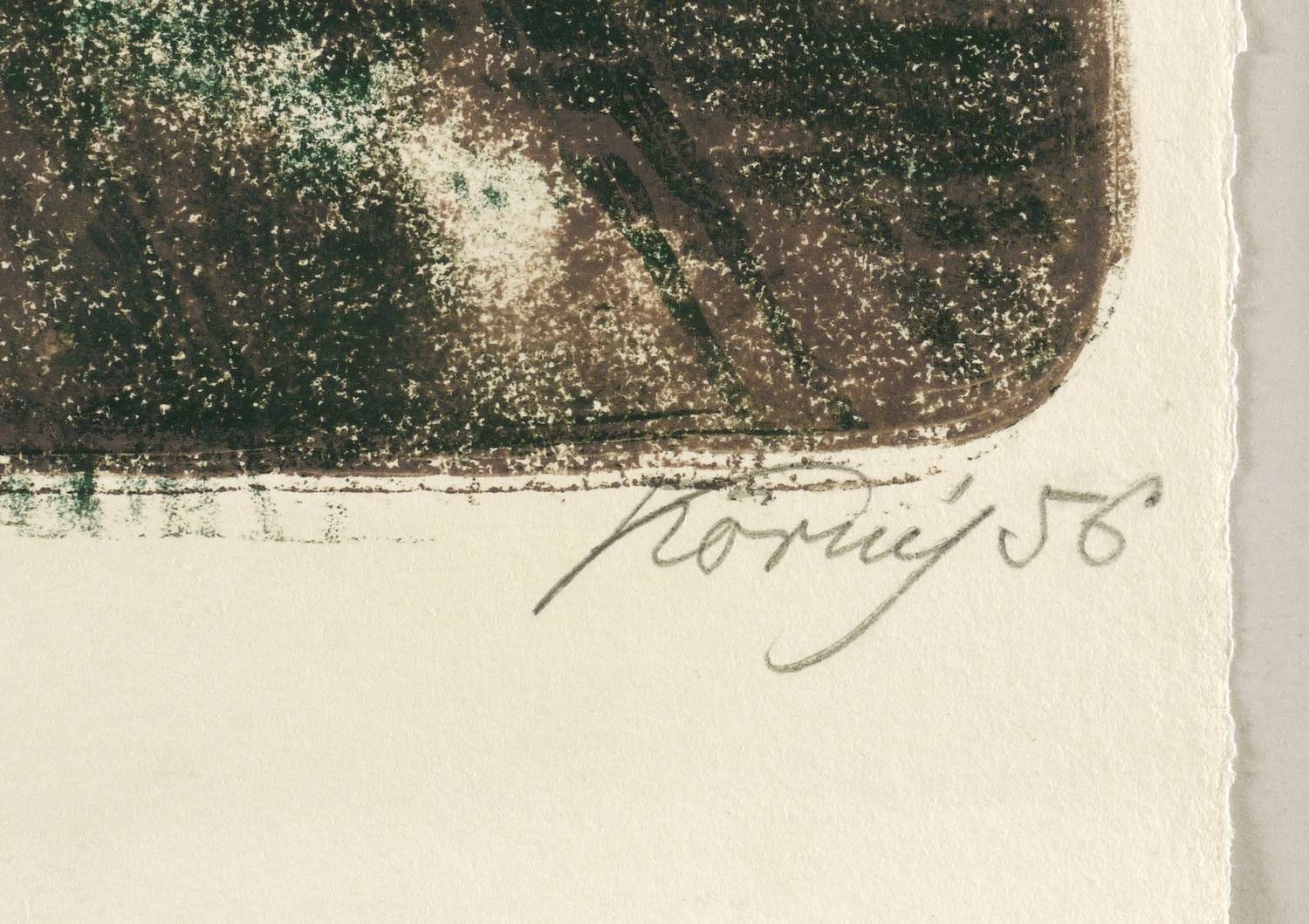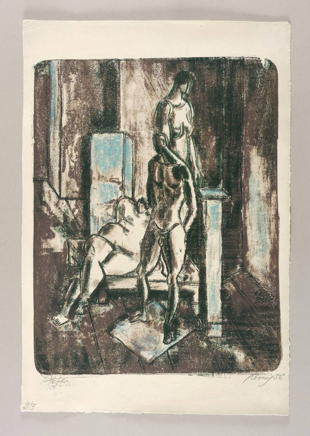Rechts unten in Bleistift signiert und datiert: ″Körnig 56″. Links Titel: ″Akte″. In der linken unteren Blattecke Werknummer: ″9/3″. – Originale unbeschnittene Blattränder. Sehr guter Zustand.