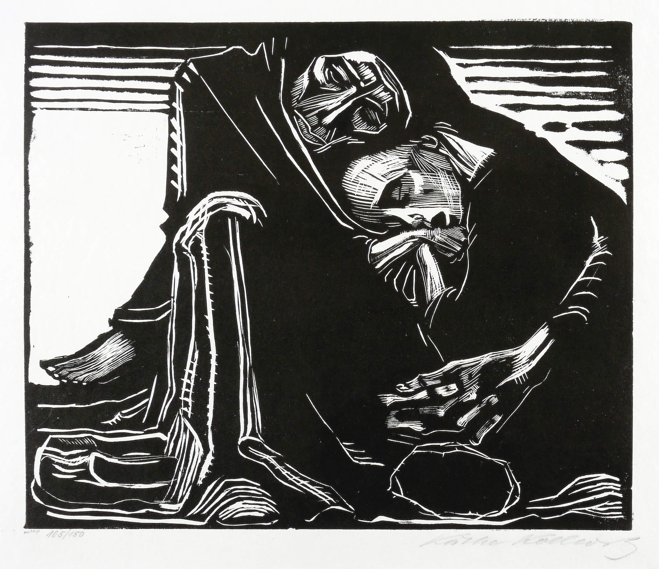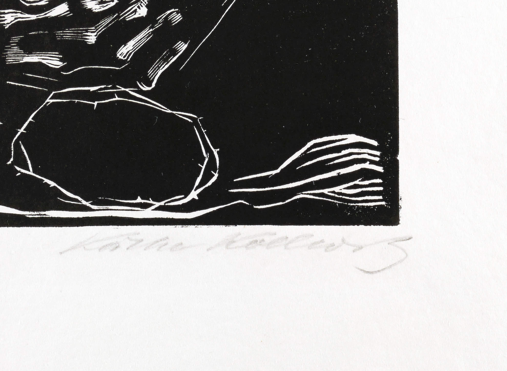 1920/1921. Holzschnitt, in Schwarz, auf festem weißem China. – Originale Künstlergrafik, von Käthe Kollwitz. – Auflage Exemplar Nr. 105/150. – 24,0 x 28,7 cm (Darstellung / Druckstock), 34 x 48 cm (Blatt).