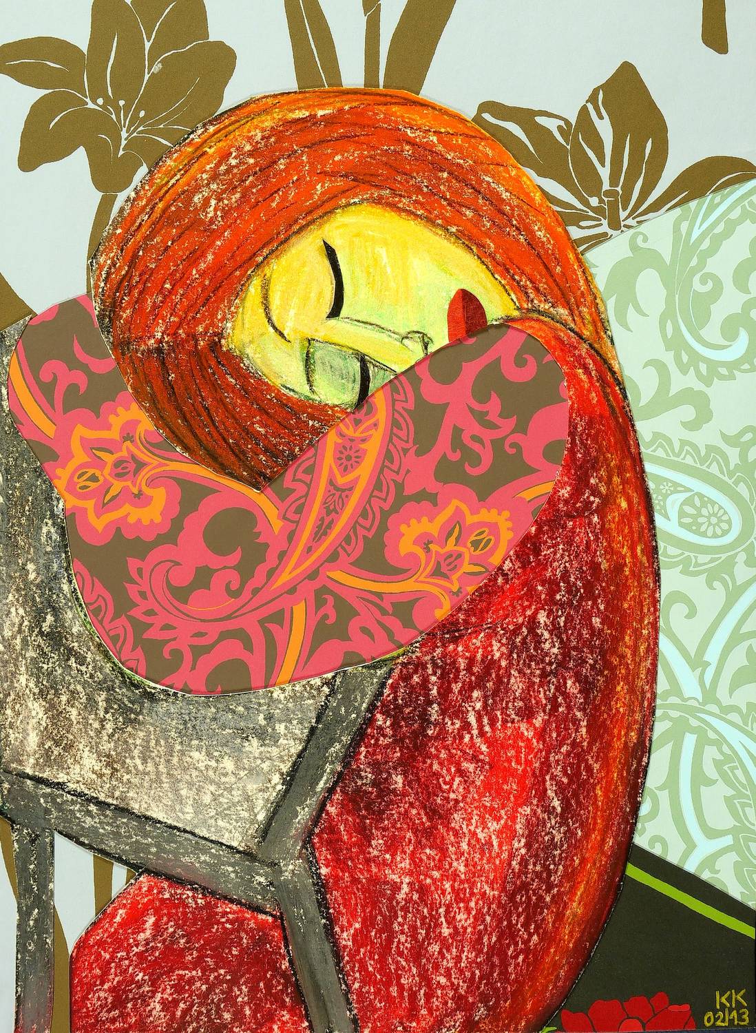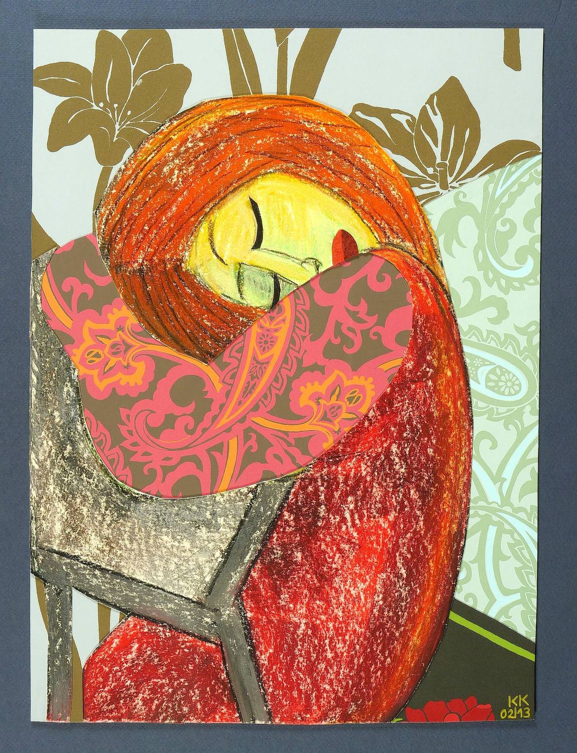 2002/2013. Mischtechnik / Pastellkreide & Collage, auf Karton. – Originale Künstlergrafik, von Katharina Kretschmer. – Unikat. – 42 x 30 cm (Darstellung / Blatt).