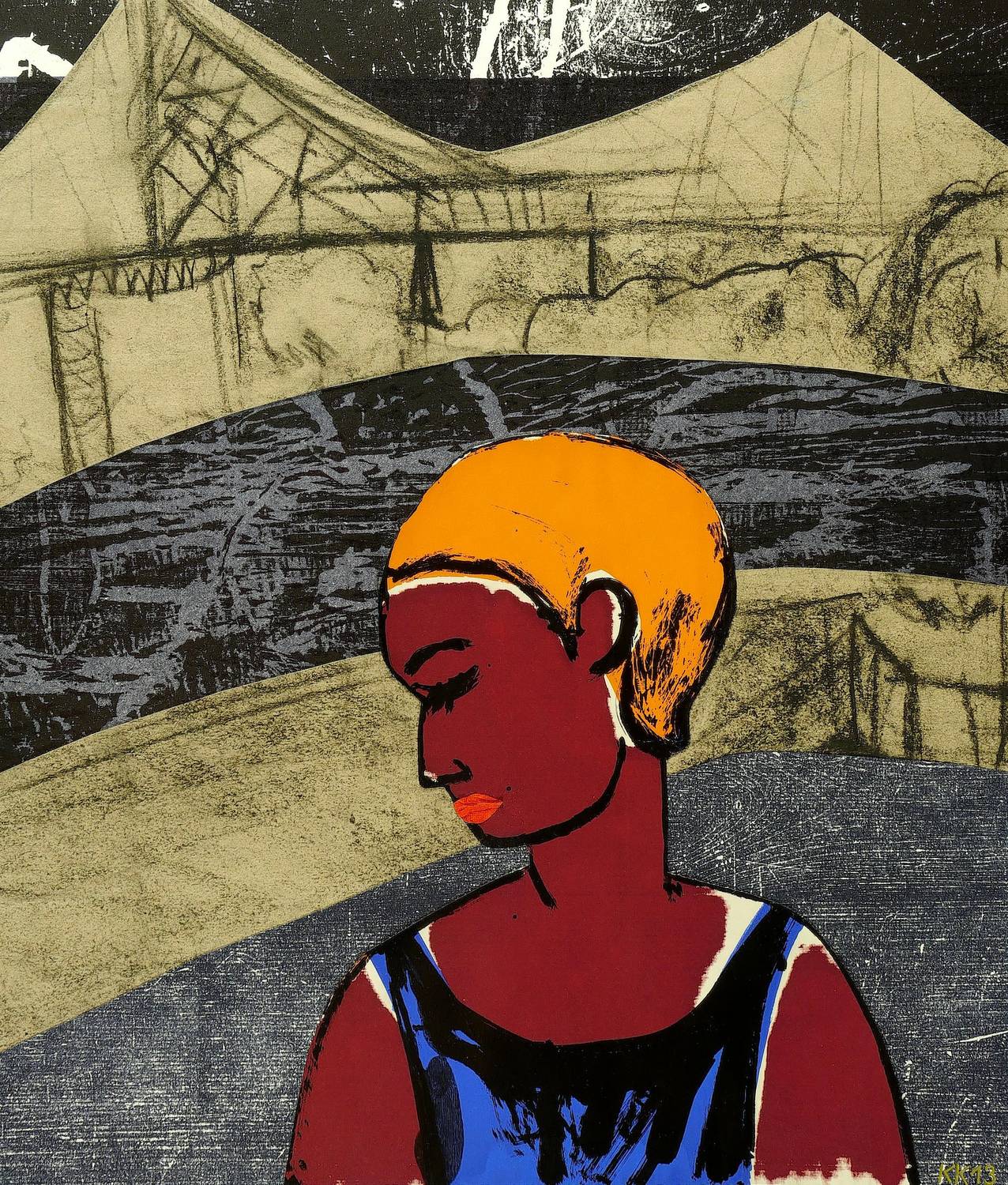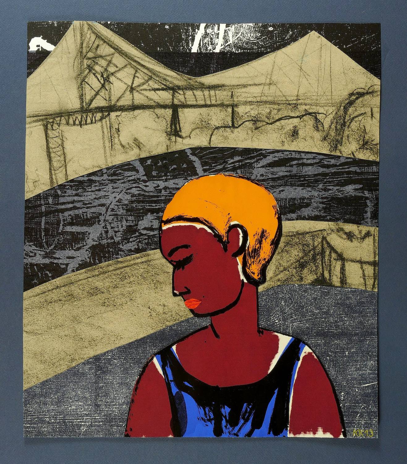 2013. Collage / Papiercollage, mit Holzschnitt, Kohlezeichnung & Mischtechnik. – Originale Künstlergrafik, von Katharina Kretschmer. – Unikat. – 45,0 x 38,0 cm (Darstellung / Blatt).