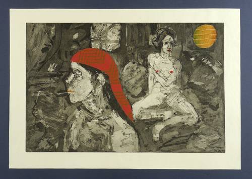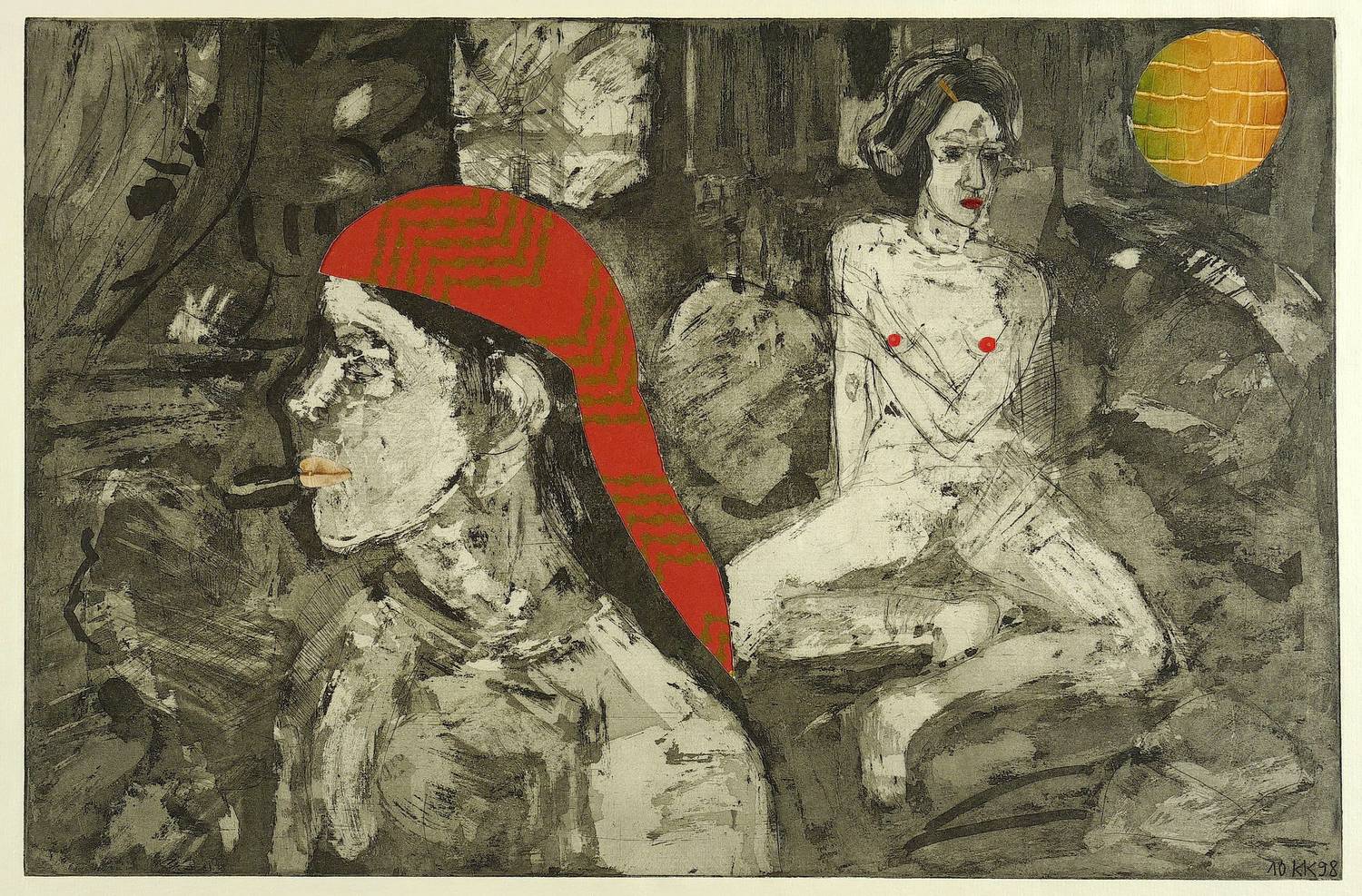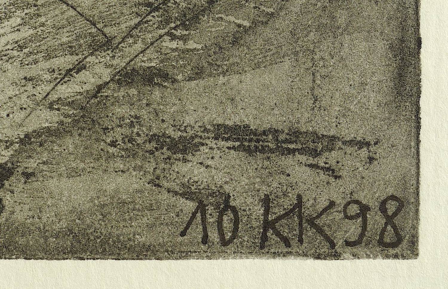 1998/2010. Radierung / Aquatinta & Strichätzung, partiell collagiert, auf Karton. – Originale Künstlergrafik, von Katharina Kretschmer. – Unikat. – 32,0 x 49,0 cm (Darstellung / Platte), 40 x 57 cm (Blatt).