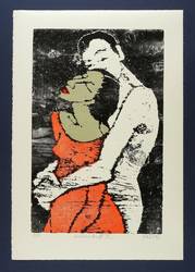 2012. Farbholzschnitt, in 3 Farben, auf Büttenpapier. – Originale Künstlergrafik, von Katharina Kretschmer. – Auflage Exemplar Nr. 1/7. – 50,9 x 32,5 cm (Darstellung / Druckstock), 62 x 42 cm (Blatt).