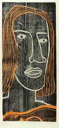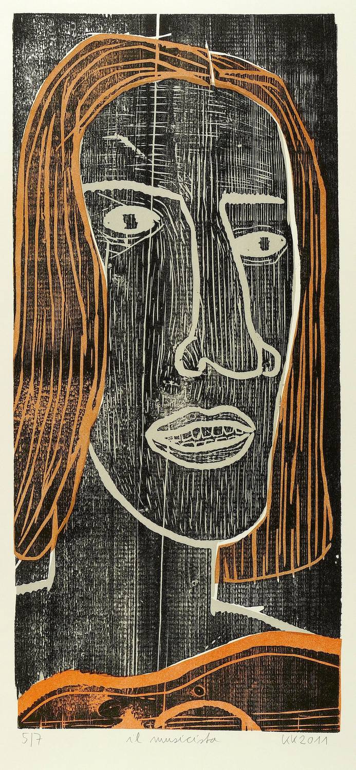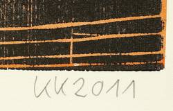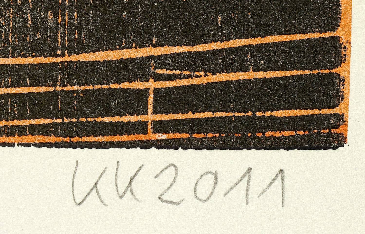 2011. Farbholzschnitt, in 3 Farben, auf Büttenpapier. – Originale Künstlergrafik, von Katharina Kretschmer. – Auflage Exemplar Nr. 5/7. – 63,2 x 28,8 cm (Darstellung / Druckstock), 77 x 41 cm (Blatt).