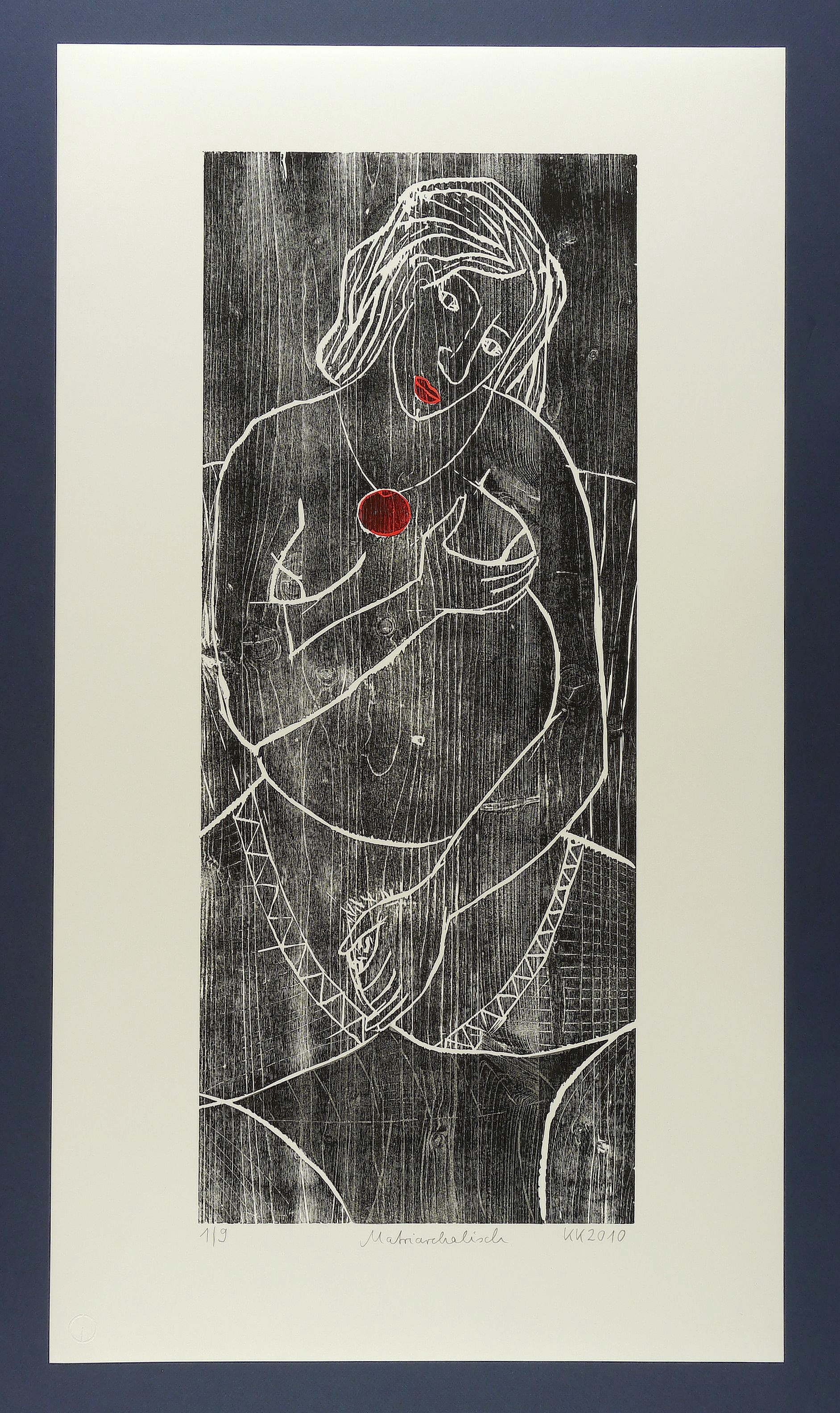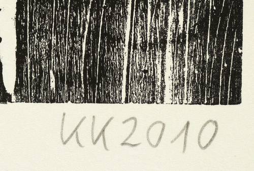 2010. Farbholzschnitt, in zwei Farben, auf Büttenpapier. – Originale Künstlergrafik, von Katharina Kretschmer. – Auflage Exemplar Nr. 1/9. – 73,0 x 29,7 cm (Darstellung / Druckstock), 89,5 x 50,0 cm (Blatt).