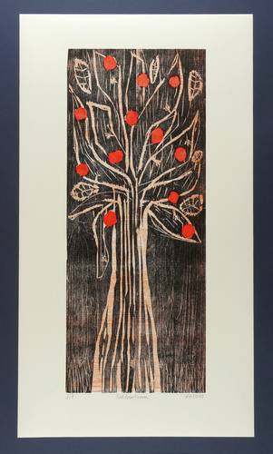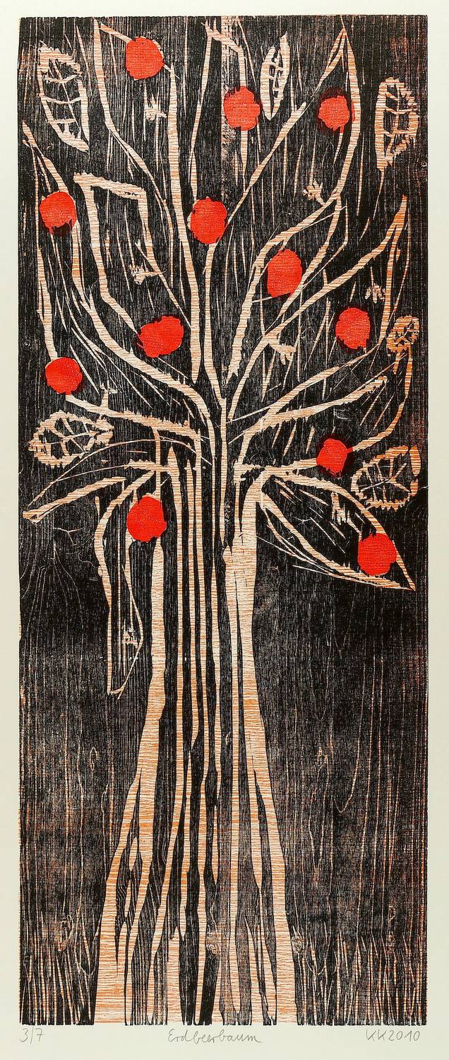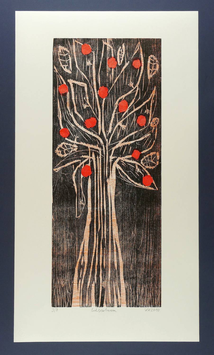 2010. Farbholzschnitt, in drei Farben, auf Büttenpapier. – Originale Künstlergrafik, von Katharina Kretschmer. – Auflage Exemplar Nr. 3/7. – 37,2 x 29,2 cm (Darstellung / Druckstock), 90 x 50 cm (Blatt).