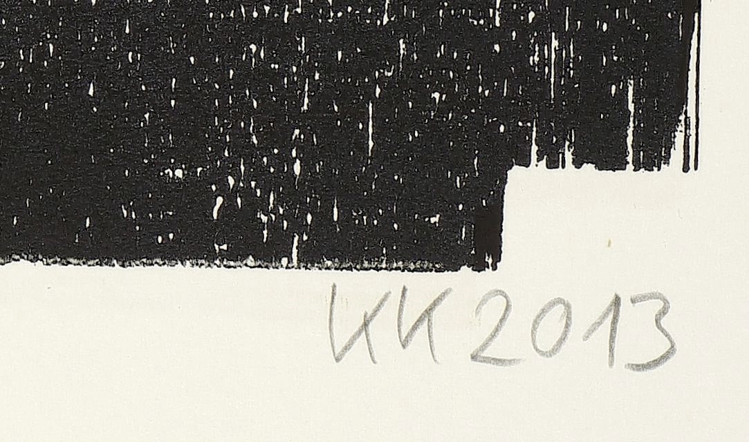 2013. Farbholzschnitt, in Grau & Schwarz, auf Büttenpapier. – Originale Künstlergrafik, von Katharina Kretschmer. – Auflage Exemplar Nr. 7/9. – 84,2 x 42,5 cm (Darstellung / Druckstock), 100 x 54 cm (Blatt).