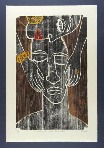 2012. Farbholzschnitt, in vier Farben, auf Büttenpapier. – Originale Künstlergrafik, von Katharina Kretschmer. – Auflage Exemplar Nr. 2/7. – 70,9 x 44,7 cm (Darstellung / Druckstock), 85,0 x 57,0 cm (Blatt).