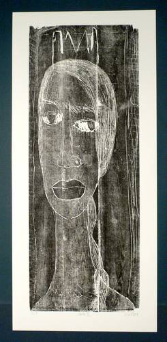 2007. Holzschnitt, in Schwarz, auf hellchamois Velin. – Originale Künstlergrafik, von Katharina Kretschmer. – Auflage Exemplar Nr. 3/7. – 89,2 x 34,3 cm (Darstellung / Druckstock), 99,5 x 45 cm (Blatt).