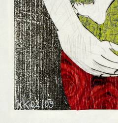 Katharina Kretschmer (*1971 Dresden, lebt und arbeitet in Dresden). Deutsche Malerin und Grafikerin. 1991-94 Studium an der Burg Giebichenstein in Halle u.a. bei Frank Ruddigkeit und Ronald Paris. 1994-97 Studium an der Hochschule für Bildende Künste Dresden bei Claus Weidensdorfer. 1997-99 Aufbaustudium bei Ronald Paris an der Burg Giebichenstein in Halle. Seit 1998 freischaffend. Seit 1999 im Sächsischen Künstlerbund und im Neuen Sächsischen Kunstverein. 2011 Arbeiststipendium der Stadt Dresden. In Papier-Collagen entwickelt sie eine vitale Bildsprache unter Verwendung unterschiedlich bearbeiteter Materialien, wie Dekor-Papieren, eigenen Handzeichnungen sowie eigenen fragmentierten Kaltnadelradierungen und Holzschnitten.