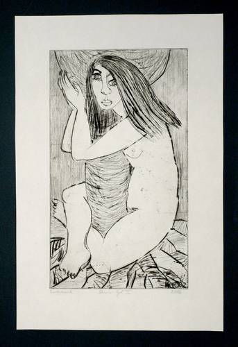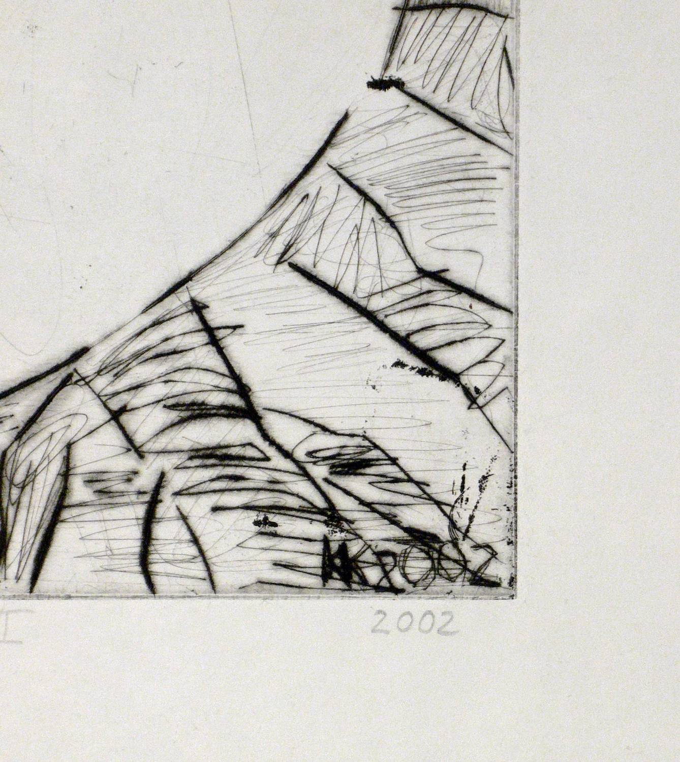 2002. Radierung / Kaltnadel. – Originale Künstlergrafik, von Katharina Kretschmer. – Probedruck. – 34,5 x 19,9 cm (Darstellung / Platte), 45,5 x 29,5 cm (Blatt).